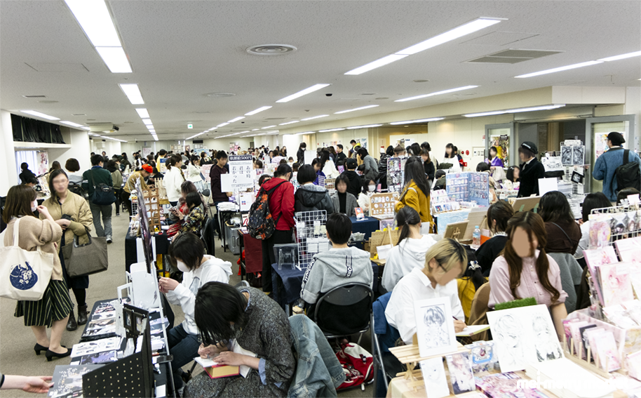 都心部、駅近の会場で開催することで立地面においても集客率の高いイベントです。自主的に制作されたグッズや原画展示販売を中心にその展開は多岐に渡ります。オリジナリティを求める10代~30代の作家が中心に出展・参加されており、回を重ねるとともに、男女比や年齢層は広くなってきています。