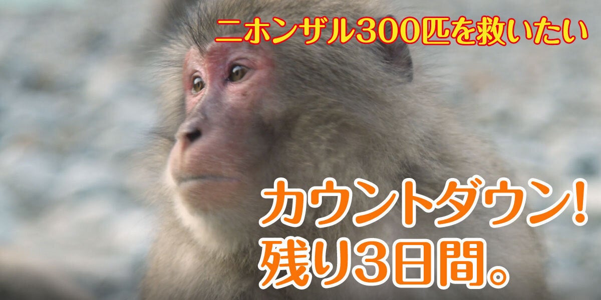波勝崎モンキーベイプロジェクト!がいよいよカウントダウン、募集〆切までラスト3日となり、目標金額達成目前となりました。あと約10万円!あたたかいお言葉やご支援、御礼申し上げます。