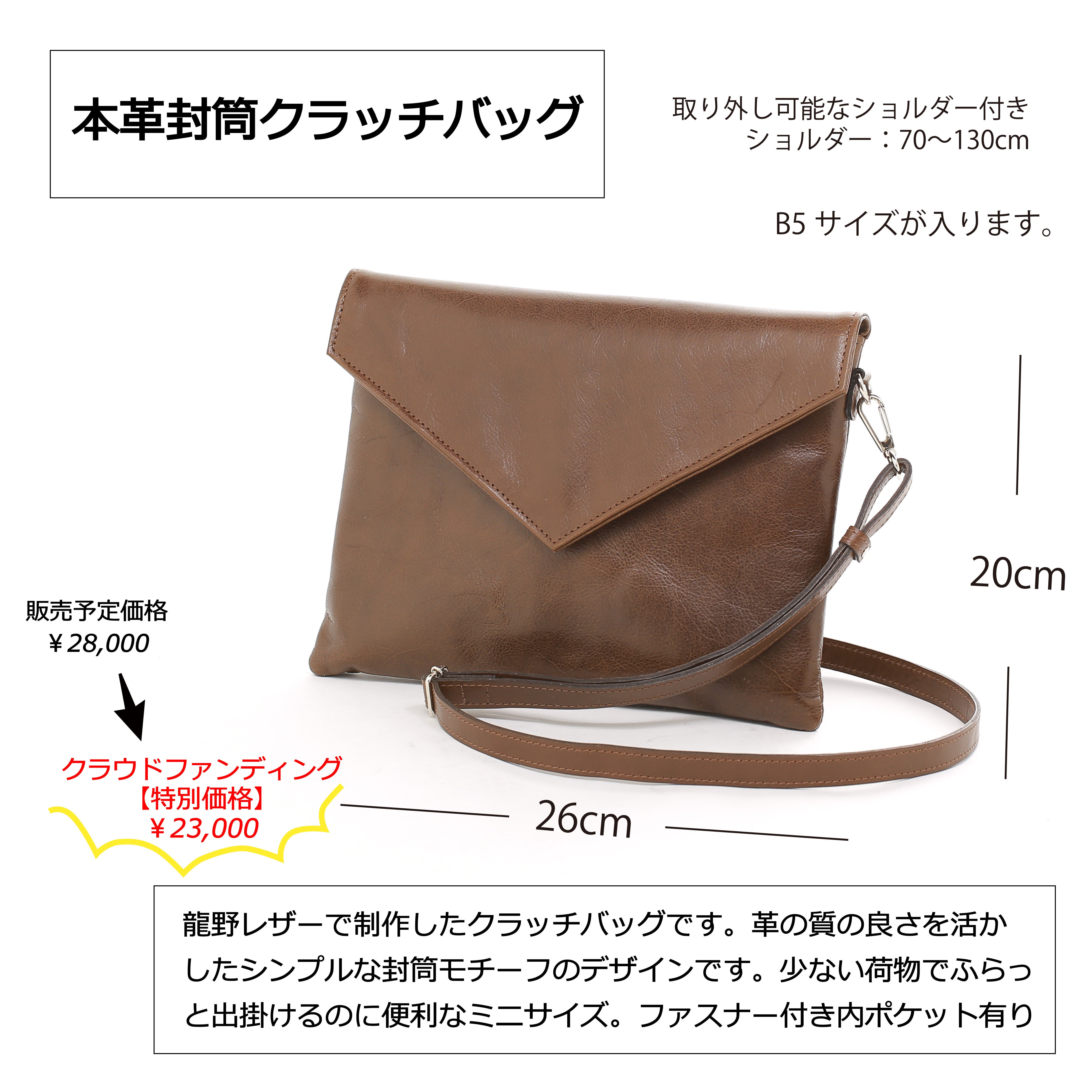 龍野レザーで制作したクラッチバックをお届けいたします。
