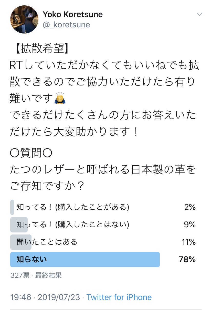 どの程度の知名度があるのかツイッターで約300人の方にアンケートを取ったところ知らない方が80%近く、これは私の予想を遥かに上回る知名度の低さで驚愕しました。