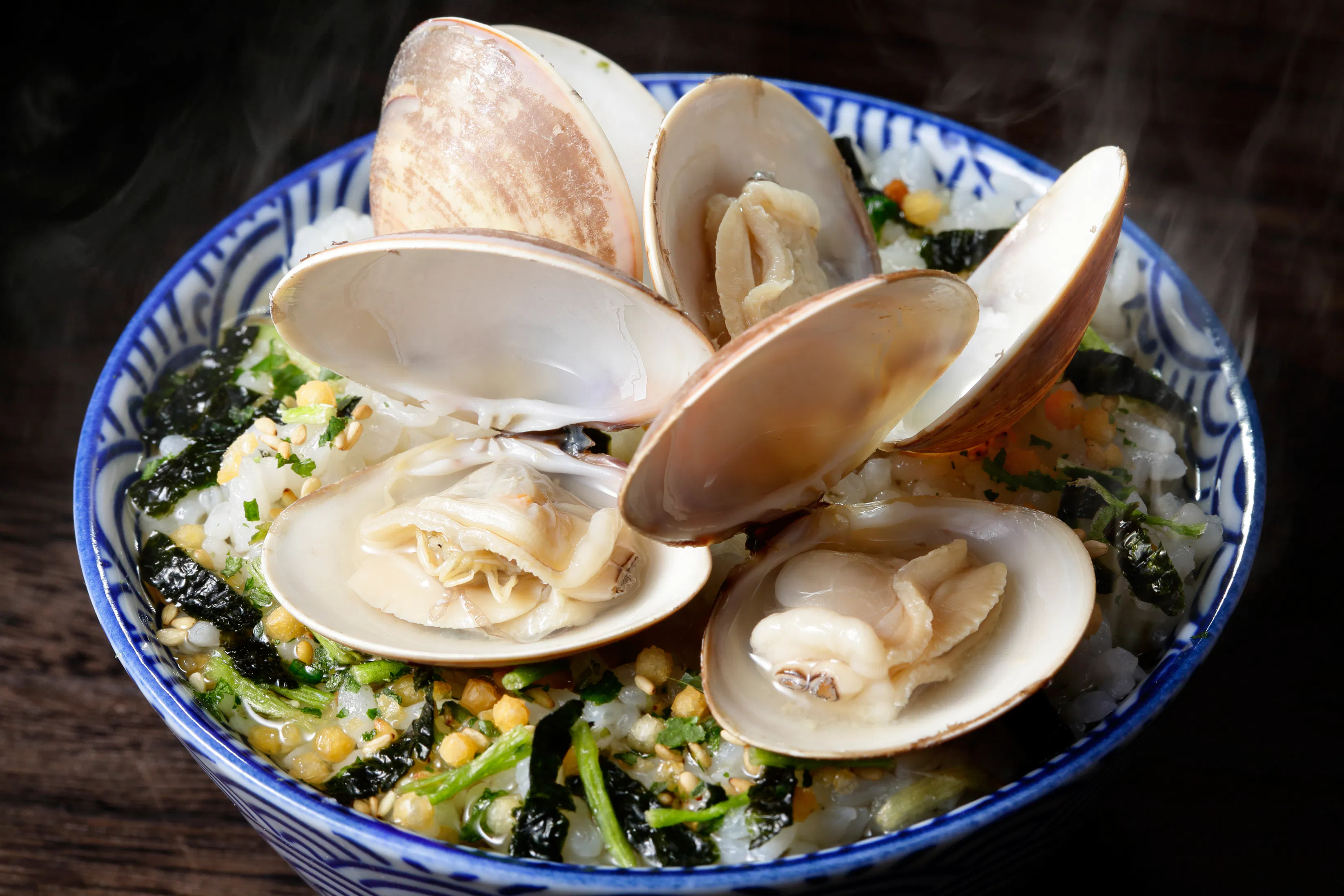 ご飯を入れずに、お吸い物としてもお召し上がりいただけます。(熱湯をかけると殻が開きます)