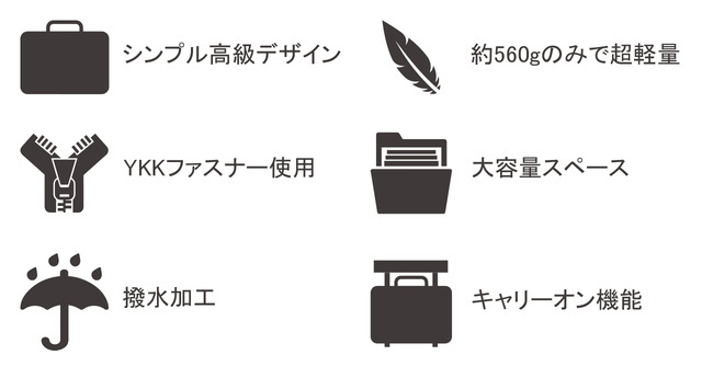 初期の450gと比べて560gは重いと感じられるかもしれません。しかし一般的なビジネストートが1kg以上ある点を鑑みると圧倒的に軽量となっています。