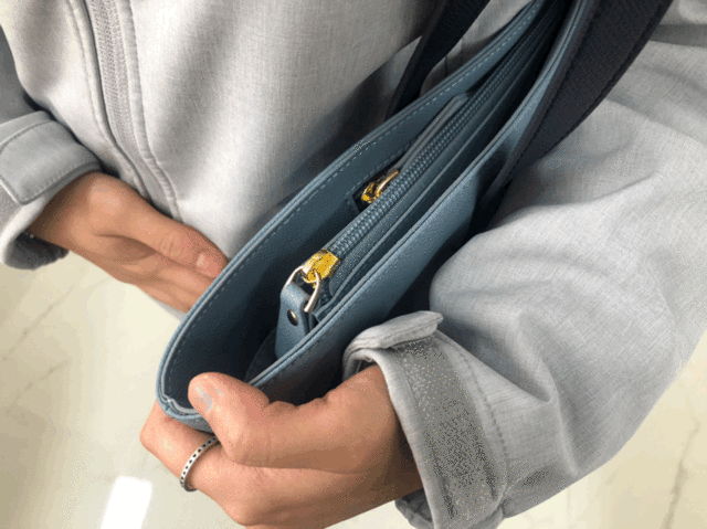 中央のメインポケットにはジッパーがついているので、中身の脱落や盗み見を防ぐことができます。