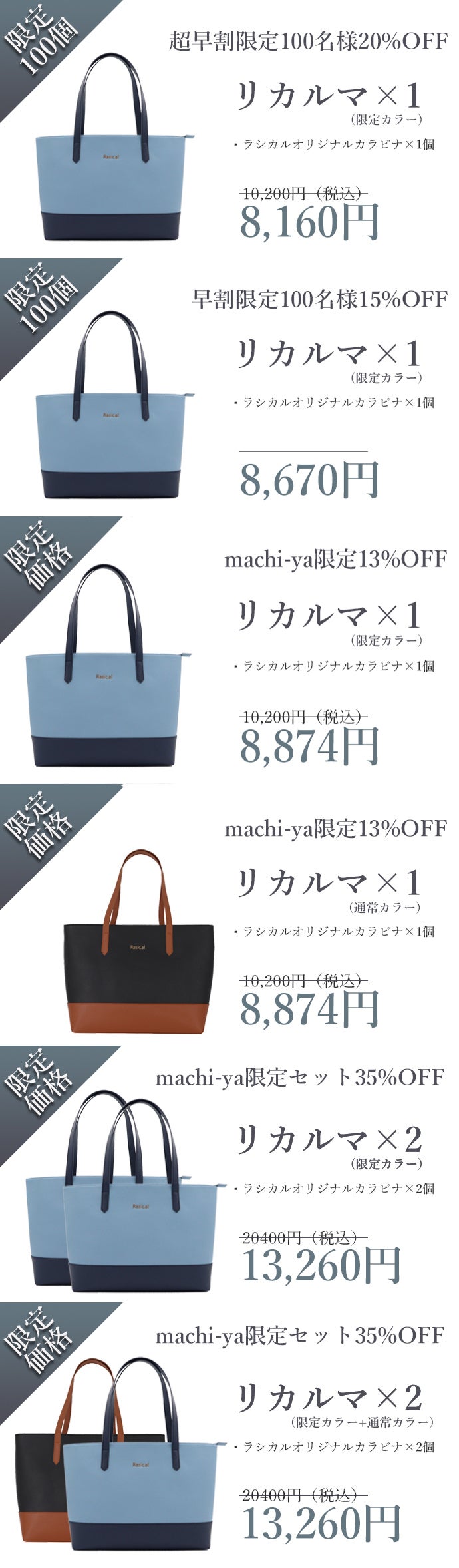 今回は、今年クラウドファンディングにて合計900万円以上の資金を集めた、人気の高かった「リカルマトートバッグ」の限定カラーを企画しました。このカラーは皆様からのアンケート募集の結果、最も人気が高かった「スカイブルー」になります。