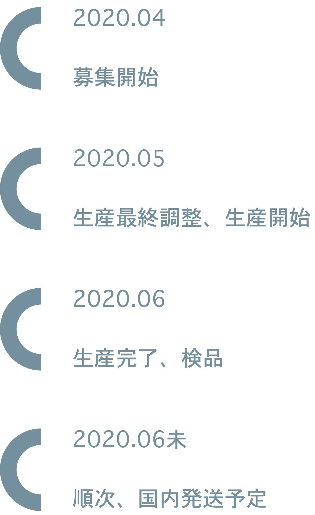 各リターン詳細に記載の発送予定月を引き渡し時期とします。但し、開発・生産状況によって遅れが生じる場合がありますのでその際は当プロジェクトページ内の「活動報告」または購入者へのメール等で連絡します。