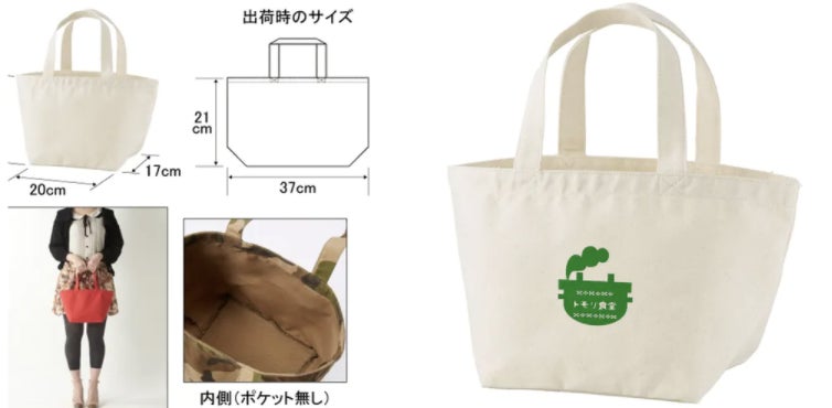 トモリ食堂のオリジナルお弁当トートバッグです。ちょっと大きめのトモリ食堂の真空お弁当箱も入るサイズです。オリジナルデザインのトートバッグですので、他の人と間違えられることもありません。