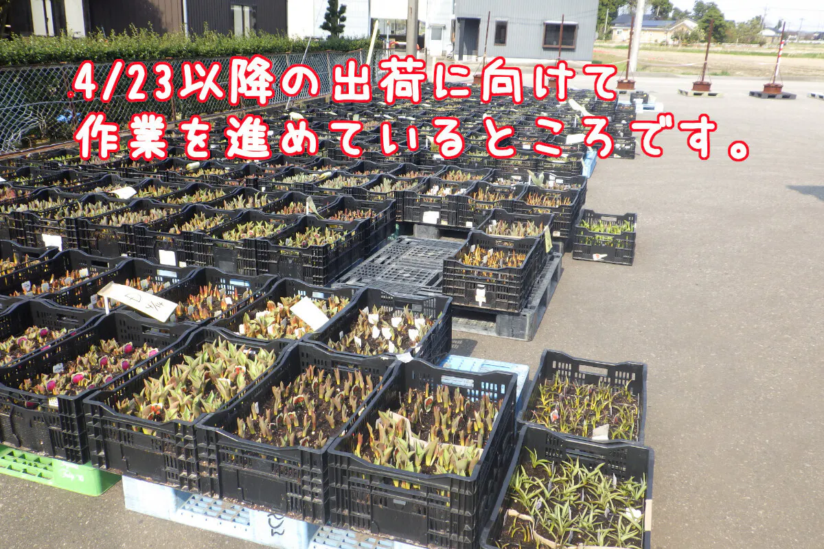 今回のプロジェクトはチューリップフェア用に準備していたもので、冷蔵庫で保管し生育を遅らせていたものです。そのため、ゴールデンウイークに栽培開始していただけるようにできるだけ早く商品をお届けいたします。