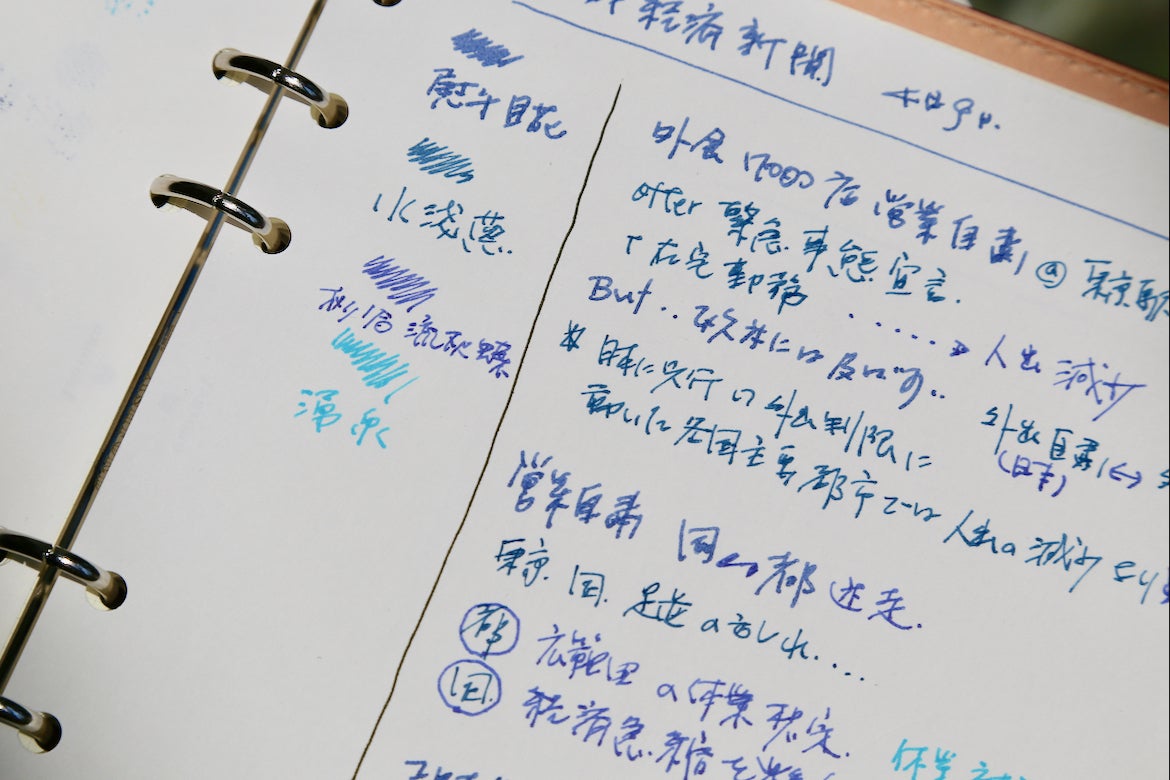 藍濃道具屋の藍染にまつわるインクを扱うようになってから、ほぼ毎日、日経新聞や日経MJの目に止まった記事を直筆筆記。早朝の、静かな時間はそんな自分時間にぴったりです。
