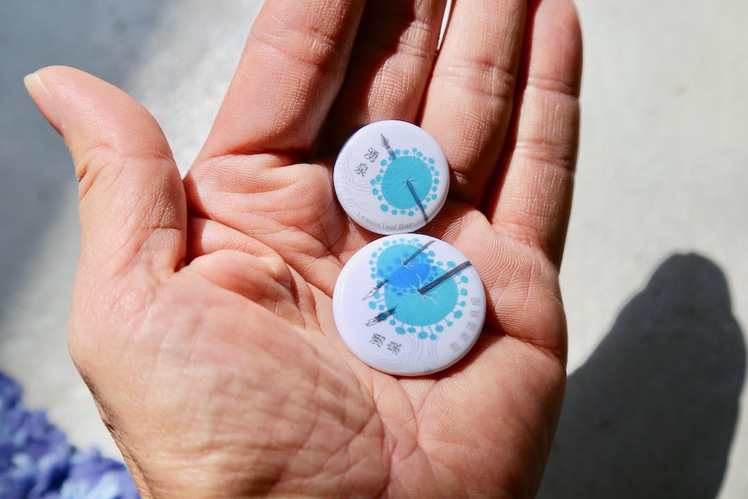 今回のクラウドファンディングのリターンには、もれなく「湧泉」特製缶バッチ2種