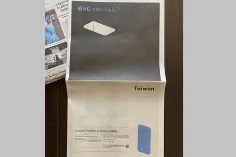 「隔離の時代に、私たちは連帯を選ぶ。あなたは一人じゃない。台湾はあなたと一緒です。私たちはあなたの身の回りで何がおきているか知っています。それがどれほど苦しいことかも知っています。なぜなら、台湾は2003年にSARSの蔓延という大変な事態を経験しているからです。WHOから今も隔絶されている台湾は、そのことを知っています。」・・と広告下部には台湾が置かれている現状を訴え、その事実と一緒に・・「私たちは、学校と企業を閉めることなくアウトブレイクを抑えすべての人にマスクを確保する方法を共有することで、国際的に貢献しています。台湾は過去数週間で、世界中の医療専門家をサポートするために、1600万以上の医療用マスクを提供しています。また、米国とEUとタッグを組んで、最先端の感染迅速検査とCOVID-19に対応するワクチンに取り組んできました。誰が台湾を孤立させることができるというのでしょうか? いえ、誰も。私たちは支援のためにここにいます」 と続いていいます。