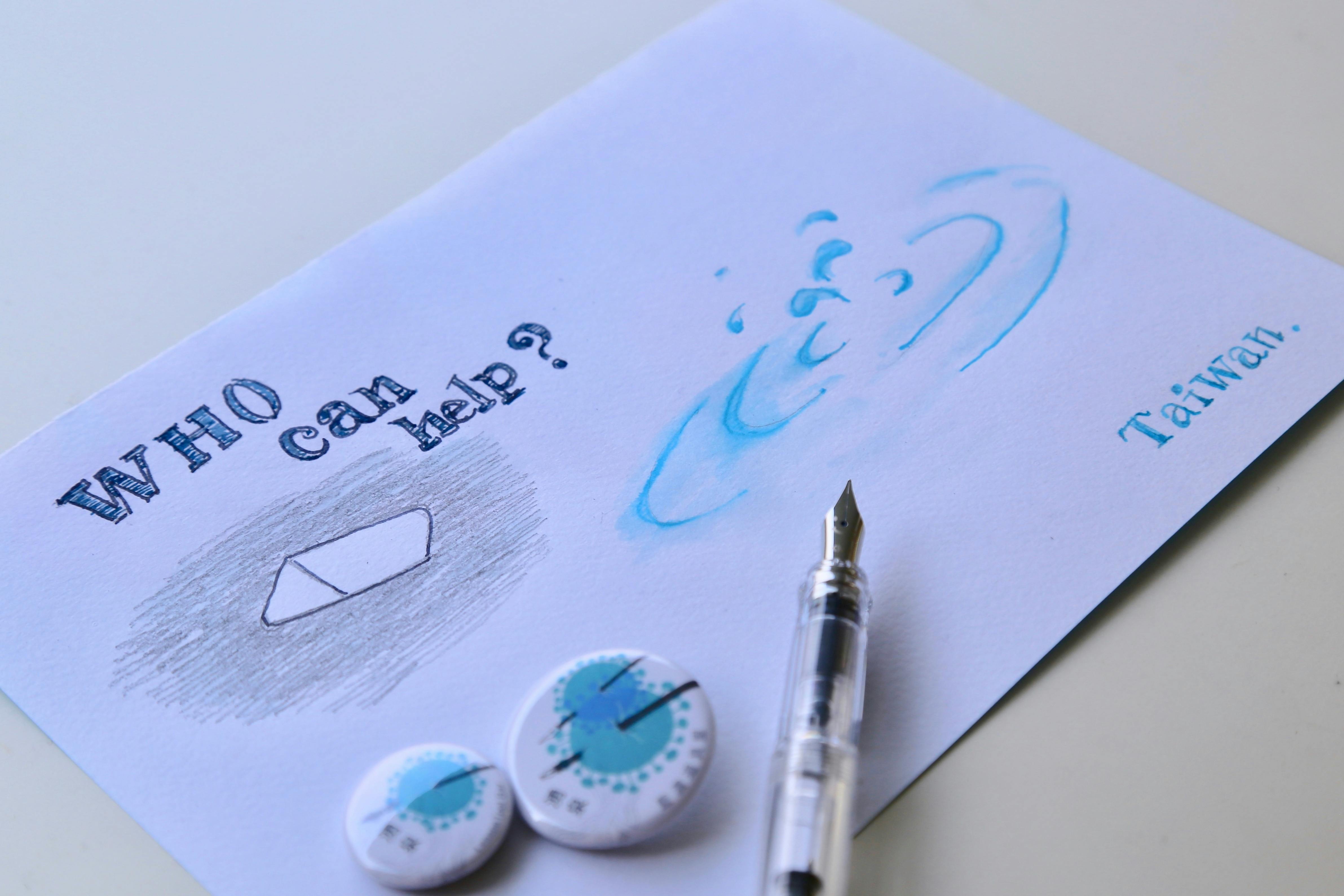 「WHO Can help ?」「Taiwan」。広告の真意
