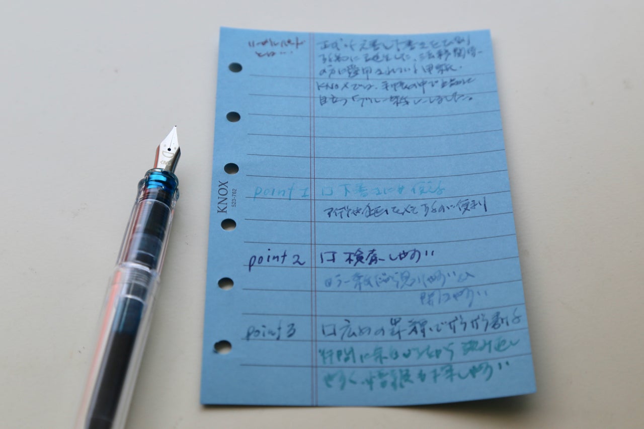 最近は、メモするのにも色々な濃淡を使ったり、ブルー調の紙にあえてブルー系のインクを使ったりして遊んでいます。