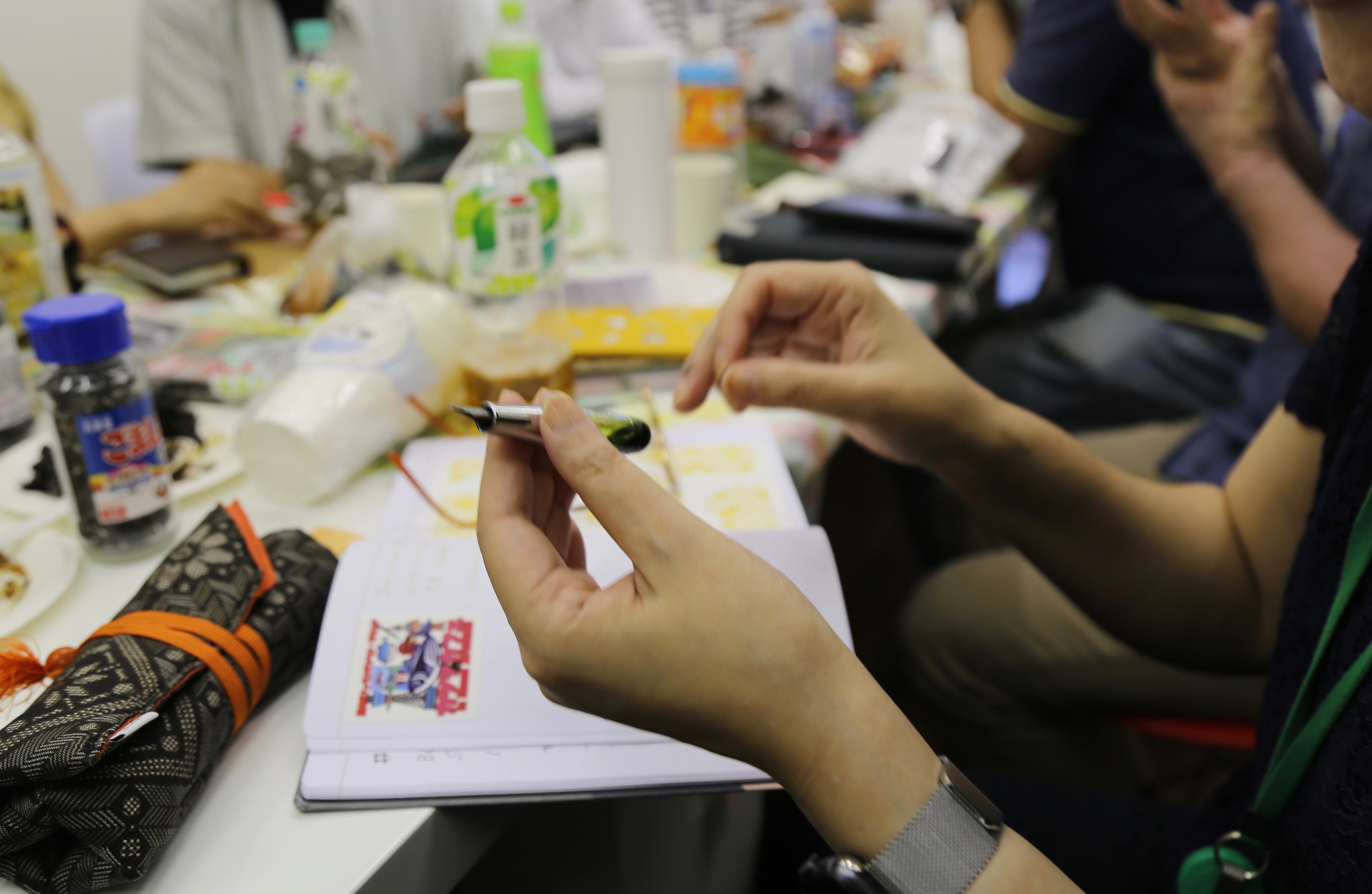 日本にサンプルを持ち帰っては、万年筆愛好家の方々の集いに飛び入り参加させていただき、実際にインクを入れて、試し書きをしていただきながら、貴重なご意見を集めて最終製品に仕上げていきました。