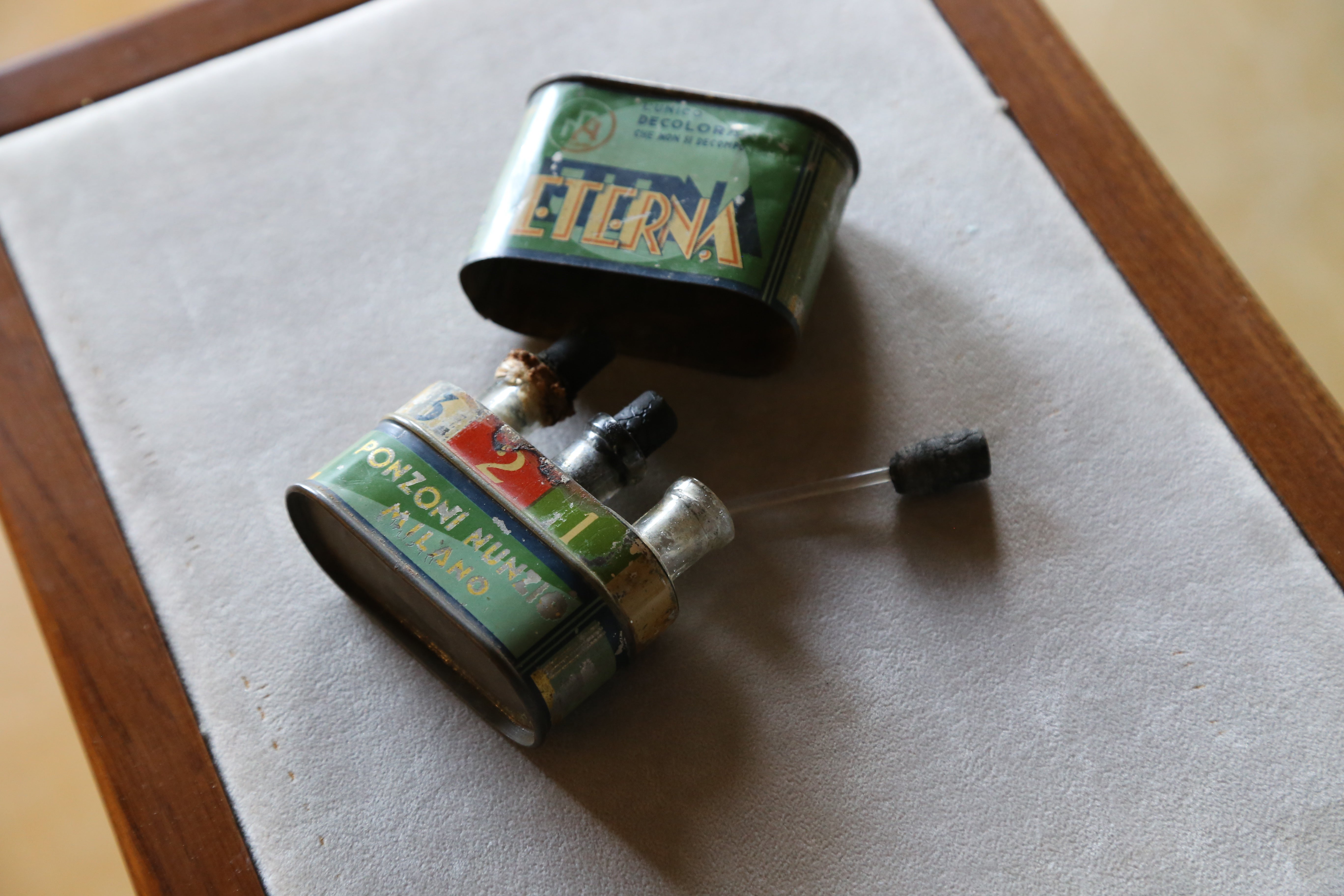 ここのショールームを、ぶらぶら歩いていると、いつも色々なアイディアが頭をよぎります。 3年前に訪れた際、偶然この工房の片隅にあったビンテージの容器と出会いました。