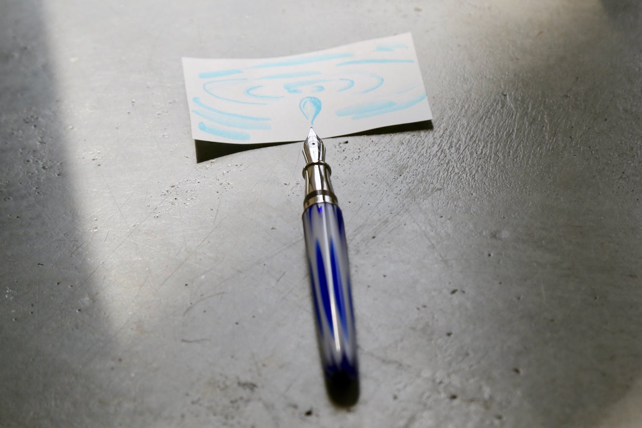 いつもの暮らしに、万年筆とインクがもっと身近に感じられたら・・・。そんな思いで作ったオリジナルのチビ万年筆キット『マイ・センツァ(イタリア語で「いつも一緒」の意味)』。今回の特別な「湧泉」も是非、チビ万年筆と一緒に連れだして欲しい!そんな思いで「字力救済」の取り組みのリターンに加えました。直筆の文字にはメールにない"想い”や”力”があると信じています。今回はチビ万年筆キット『マイ・センツァ』の誕生物語をお話しさせていただきます。毎年、最低2,3回は訪れるイタリア、フィレンツェのビジネス・パートナーのイデア・プリマ社。そのショールーム兼工房は、オーナーのマウリッツィオ氏がイタリアをはじめ、世界中から集め持ち帰ってきた「書く」にまつわるビンテージの筆記具などが所狭しと飾られるとても素敵な雰囲気をもつ場所です。ここのショールームを、ぶらぶら歩いていると、いつも色々なアイディアが頭をよぎります。 3年前に訪れた際、偶然この工房の片隅にあったビンテージの容器と出会いました。コンパクトに・・でもインク漏れしないように・・使いやすいように・・・イメージにあうものを寄せ集めて、ディティールをつめていきます。頭の中に浮かんだ妄想を形にしていく。今までないモノをこの世に生み出していく。イタリア人達と「あ〜でもない、こ〜でもない」とケンケンガクガク。そんな時間が楽しかったりします。文化や風習の違いを乗り越えるため、細かいことまで確認しながら進めていく打ち合わせに欠かせないのは・・地元の美味しい食材を提供してくれるレストランでのランチタイム。美味しいワインは会話の潤滑油になると信じてます。(笑)こんな感じのやりとりを繰り返しながら、試作繰り返します。日本にサンプルを持ち帰っては、万年筆愛好家の方々の集いに飛び入り参加させていただき、実際にインクを入れて、試し書きをしていただきながら、貴重なご意見を集めて最終製品に仕上げていきました。そんなこんなで、仕上がってきた商品はなんとも愛おしく・・・イタリアから入荷後に契約している万年筆のペン先調整士の下へと届けられます。万年筆の構造はとてもシンプルで、ペン先とペン芯の調整具合でインクの出方や書き味が微妙に変わってきます。だからこそ最後まで手抜きはできません。日本に到着後、1本1本検品と共に標準の日本語にあわたペン先調整を施しています。・・ちなみに鉄製のペン先はドイツの専門業社より仕入れたものを、イタリアの工房で1つずつこのオリジナル万年筆のブランド名にちなんだ実在した貴族「ストロッツィ家」の紋章をデザインしたゴマークを刻印しています。*今までの情報や活動はUffizi Strozziにてご確認ください。