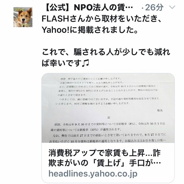 ※NPO法人 消費者たすけ隊が運営している賃貸トラブルを抑止するための活動です※