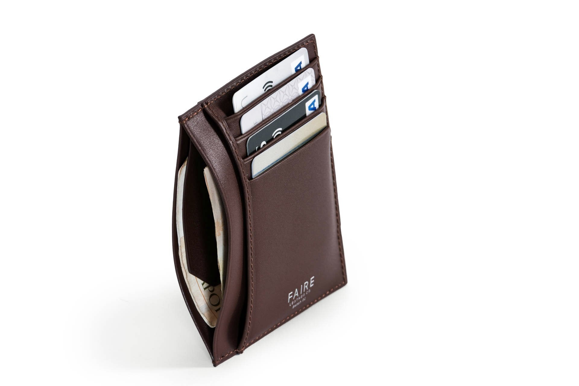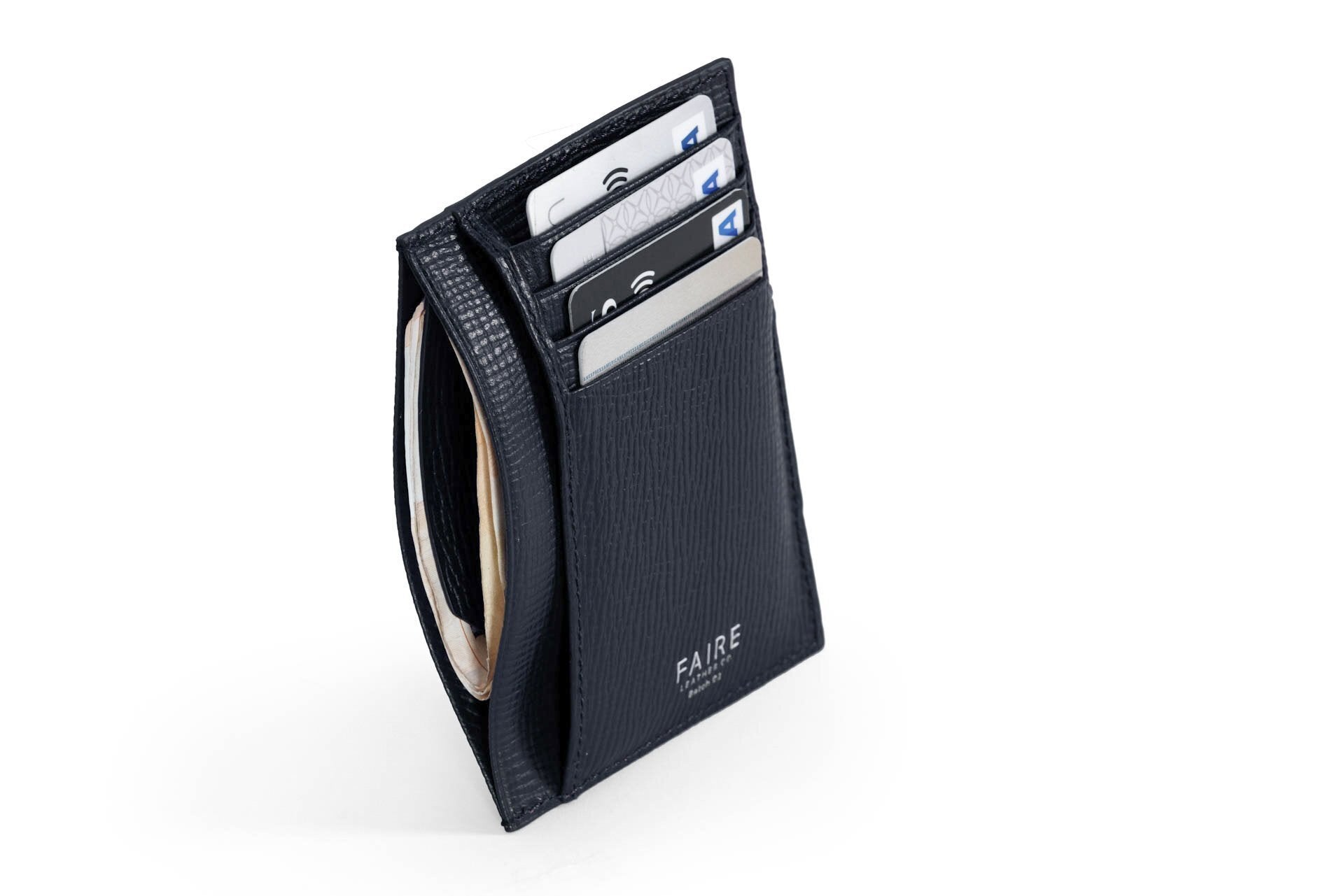 「FAIRE」カードウォレットは、紙幣とカードに加えて、領収書や名刺をすっきりと収納することができます。