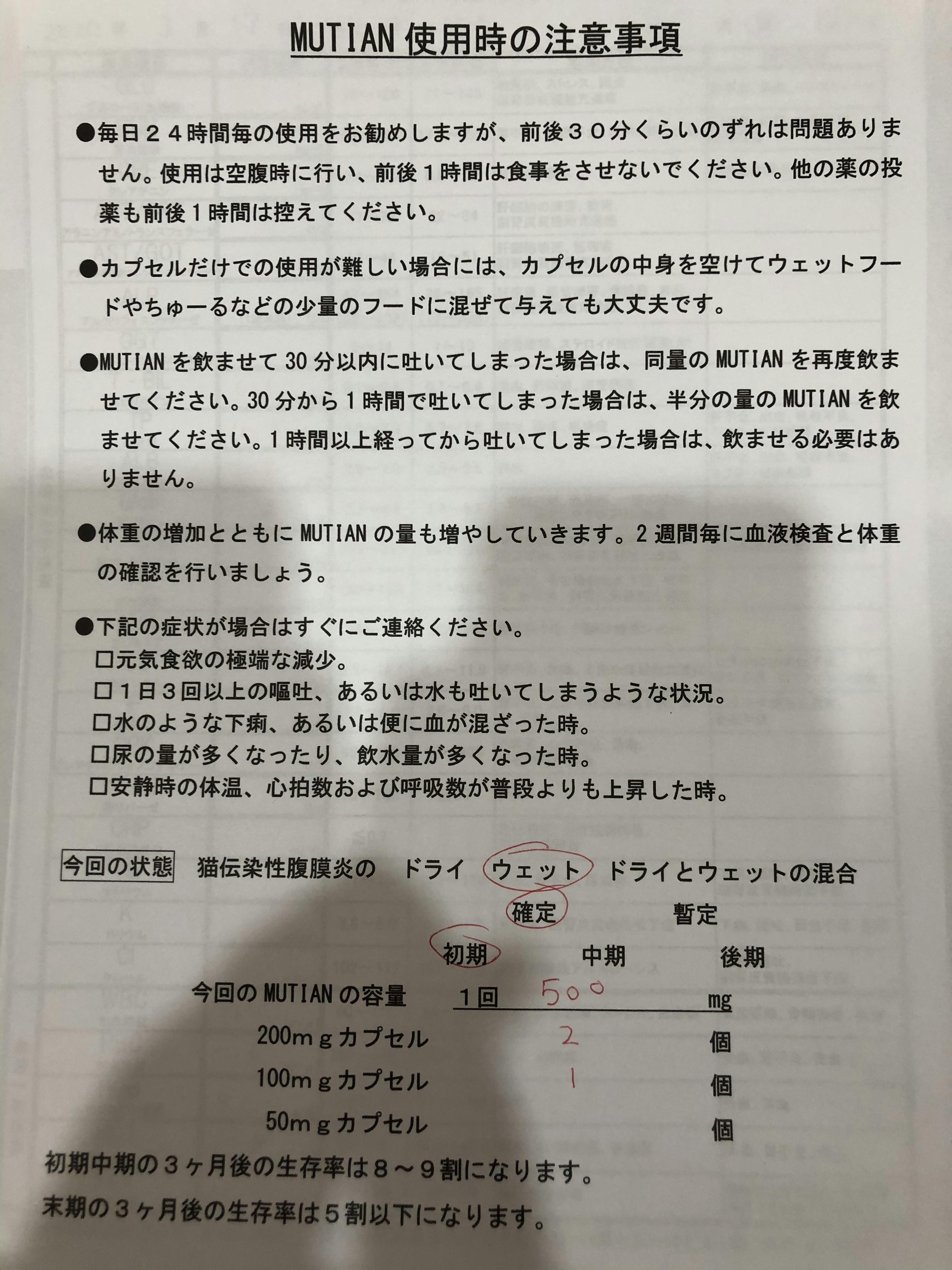 主に、MUTIANの購入費、動物病院の費用、都度写真で費用がかかったのか、どんな治療状況なのかを