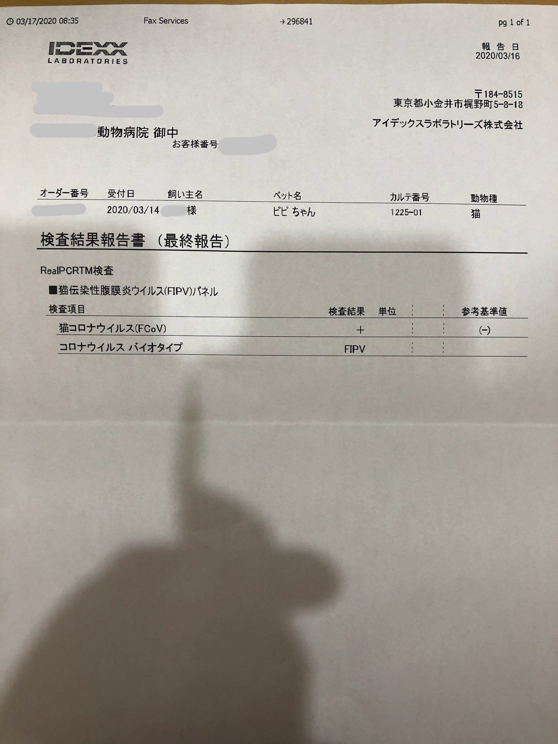 3月17日(火)にFIPと診断され、この子の命を守りたい