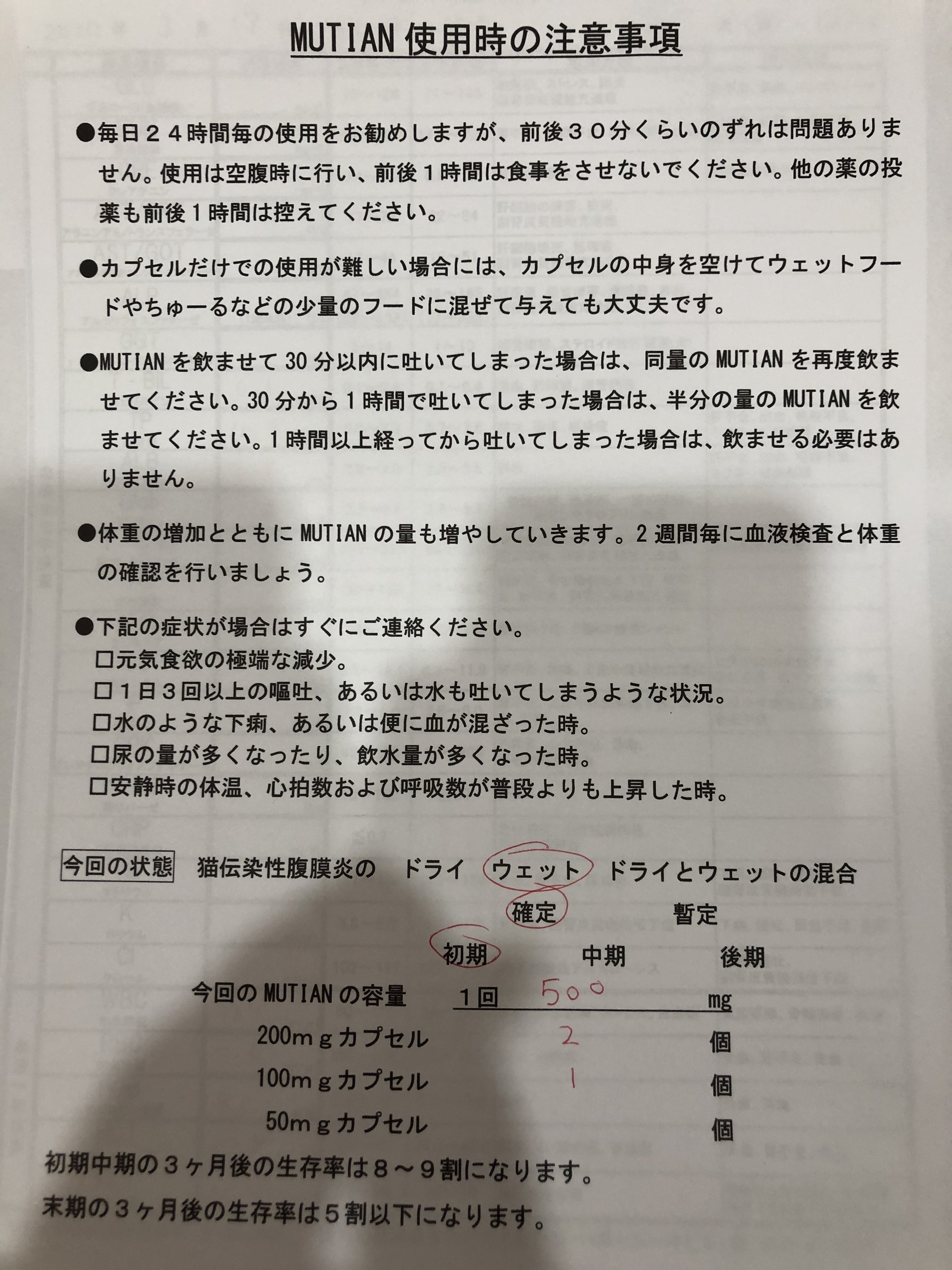 ただ、一つ海外で開発されたMUTIANという薬の高い効果が確認されています。生存率は80%にも上るそうです。ただこのMUTIAN、どうぶつ保険適用外で、輸入品となるため、非常に高価なお薬です。