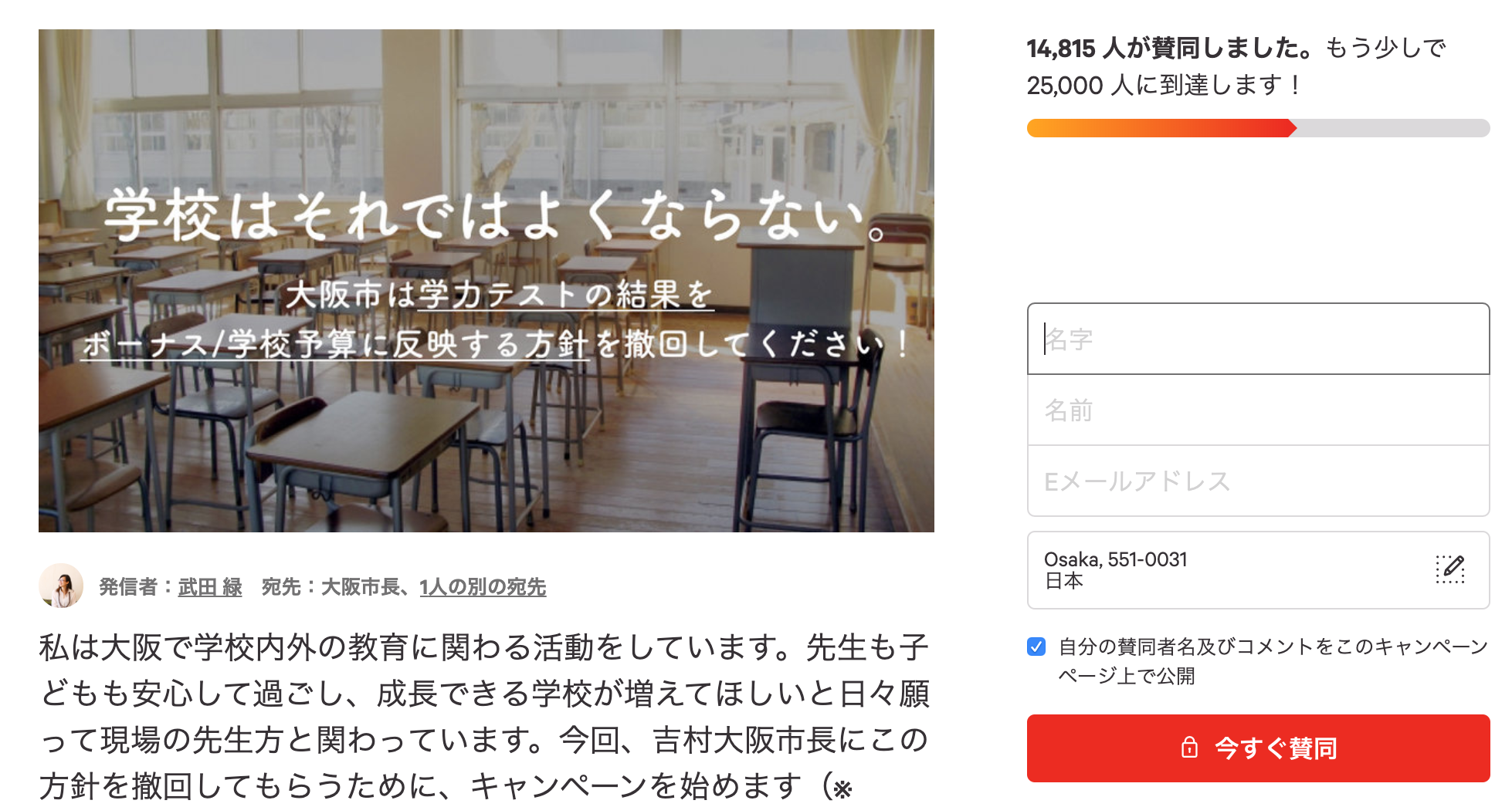 過去には、大阪市における「全国学力テスト結果を教員のボーナスに反映する方針」に反対する署名キャンペーンを行なったり、今回のコロナショックによる一斉休校についても、署名を立ち上げたり、居場所情報をまとめるなどの取り組みをしてきました。