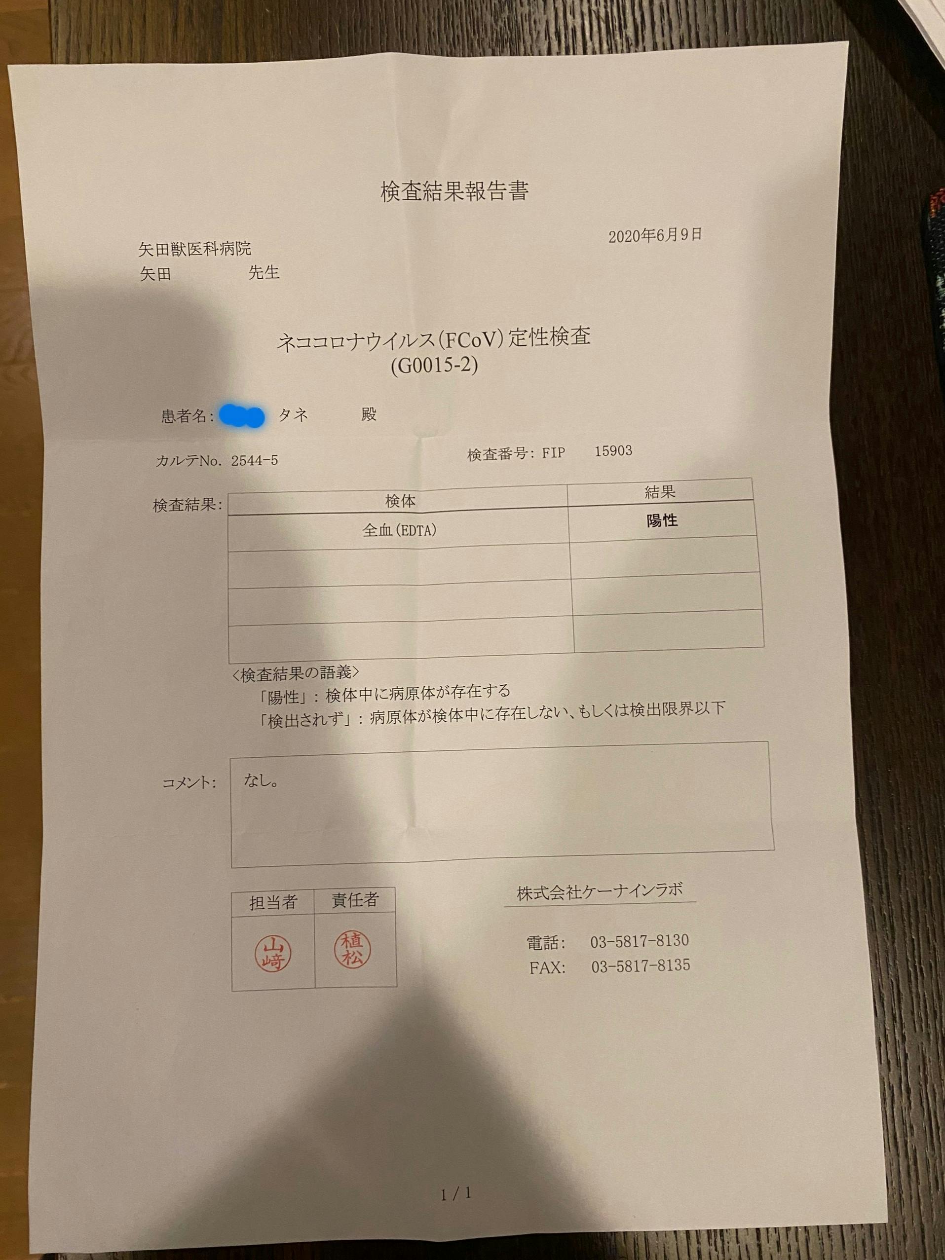 クムもFIPであることが発覚したのは、タネの回復を喜ばしく思っていた矢先のことでした。