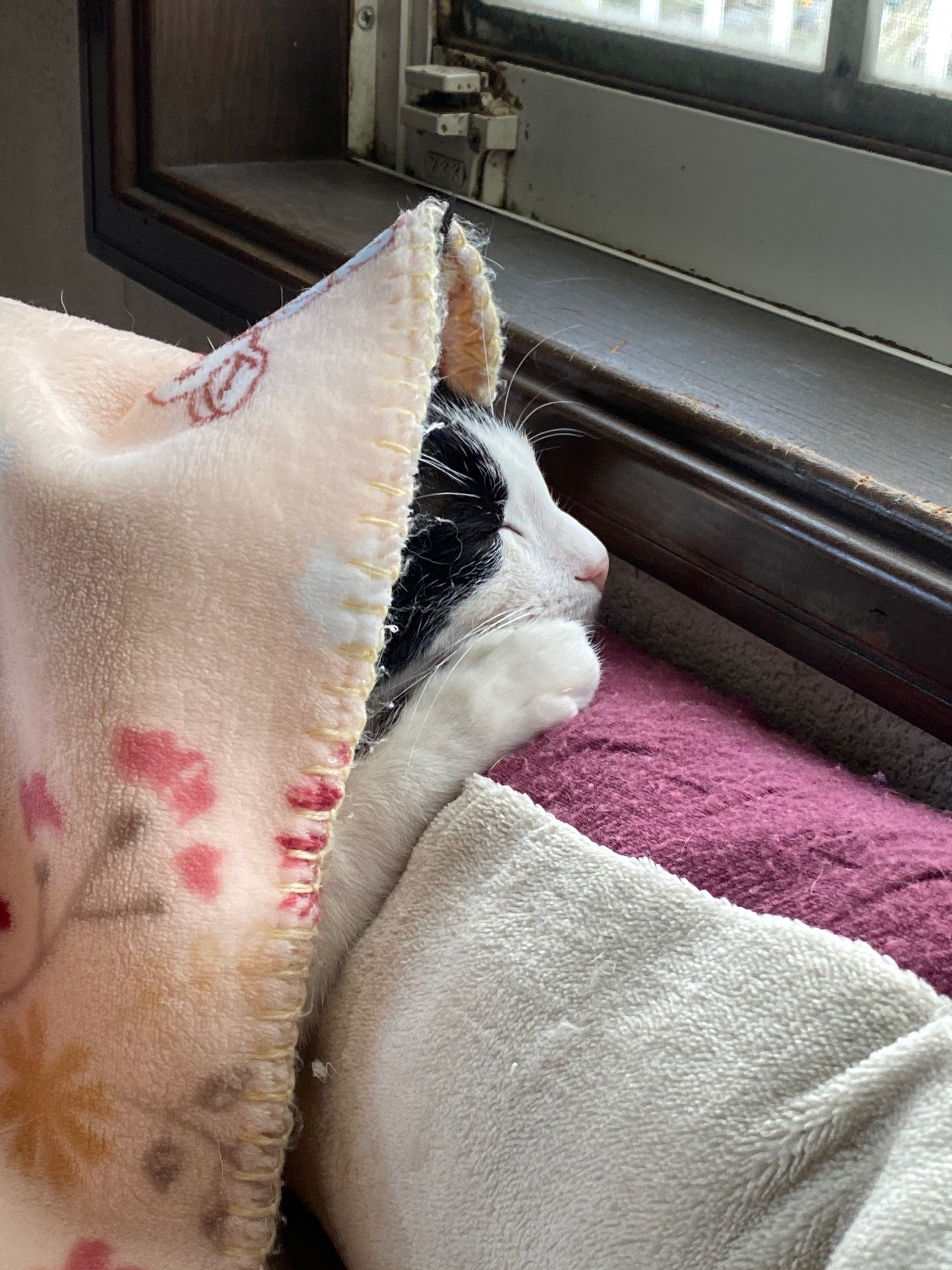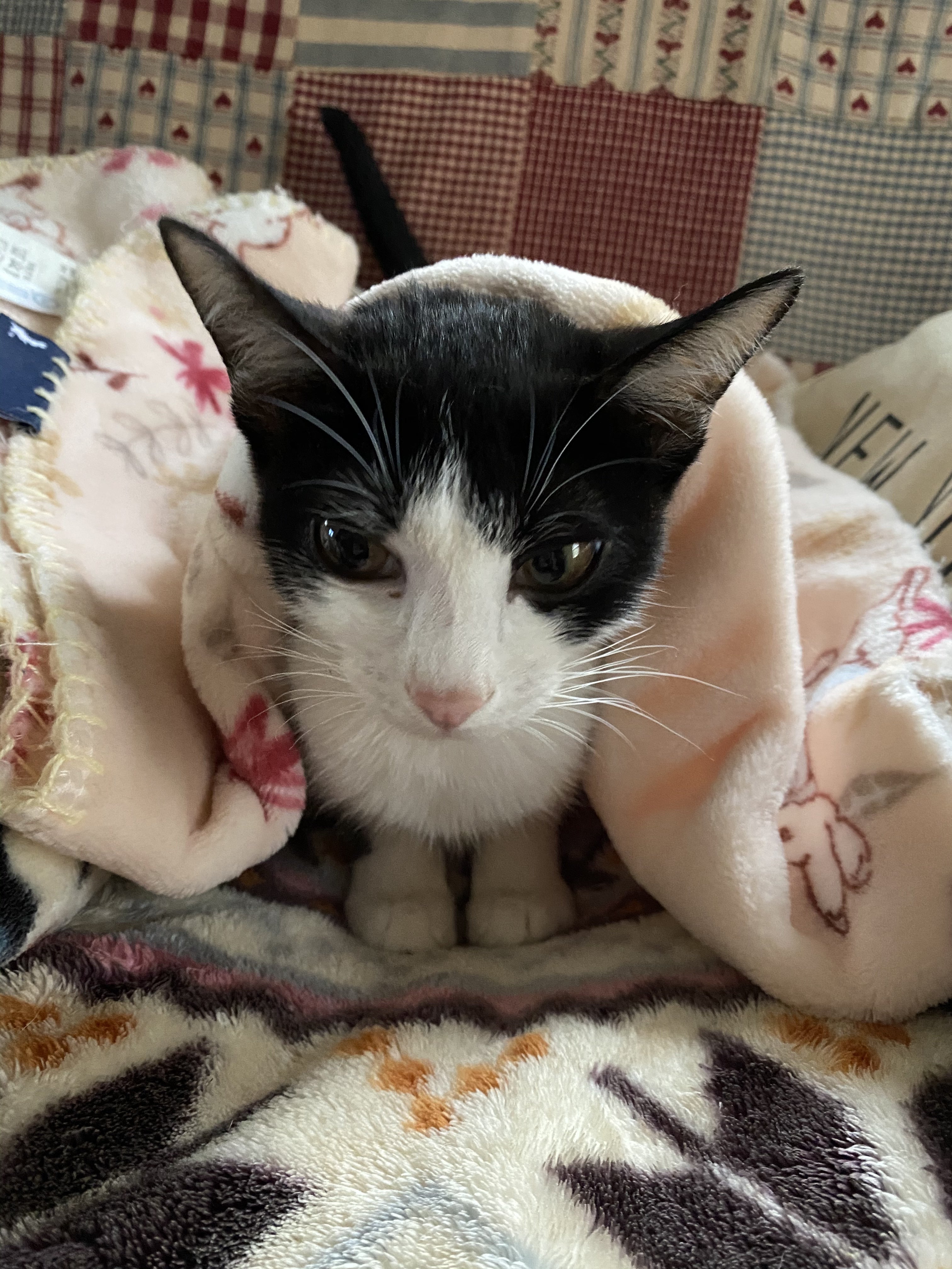 タネは昨年から初めて乳飲み子の段階から子猫を育て始めた子で、保護猫ボランティア団体から譲り受けました。生後1か月ほどで育児放棄にあったのか、一人ぼっちで歩いているところを保護されたそうです。