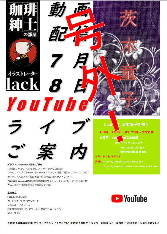 lack先生 YouTubeにて “軽井沢 茨木童子”お絵描き 配信 決定 !!!