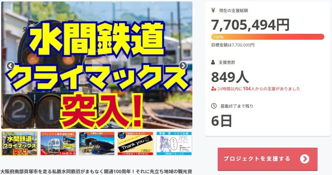 たった今、目標支援額の7,700,000円を達成いたしました。