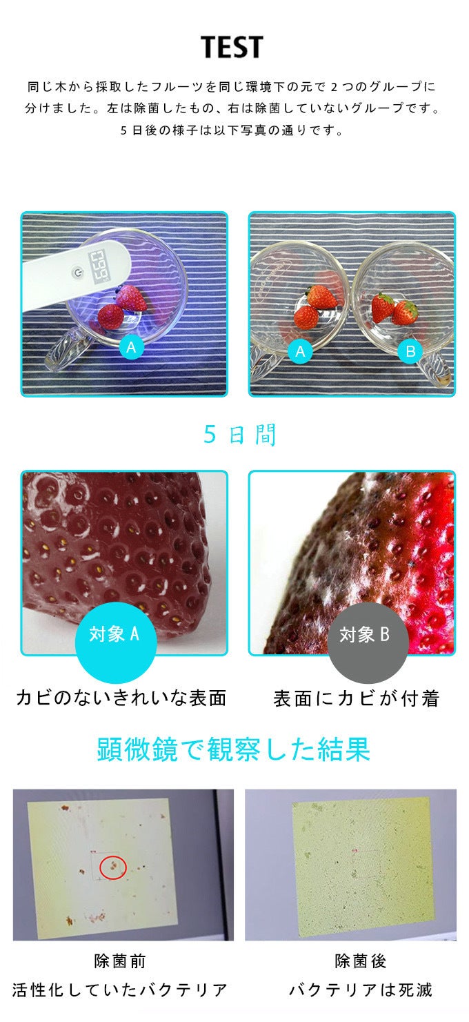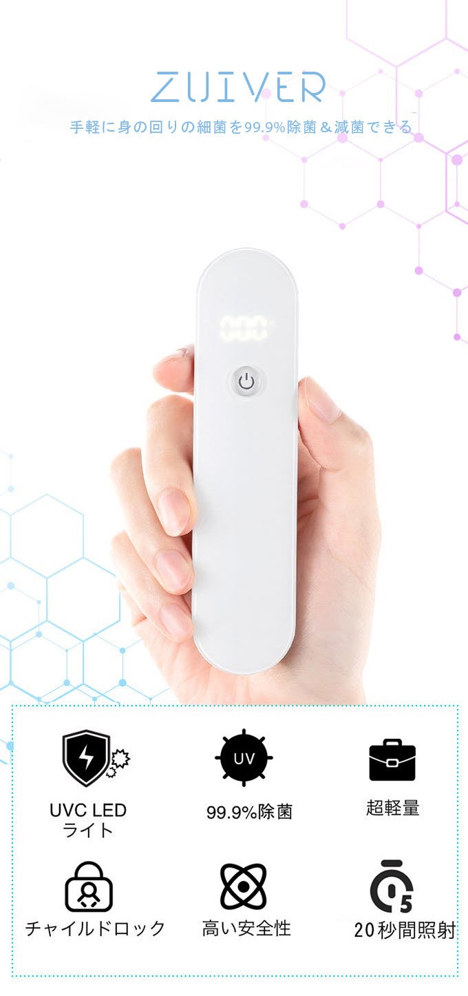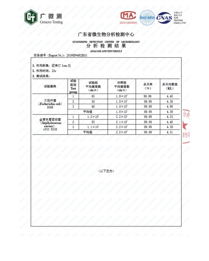 Zuiverは製品試験を通過し、非常に高い信頼度のある許可、認証を受けています。20秒で多くの細菌(バクテリア)を除菌し、その除菌率は99.99%を誇ります。