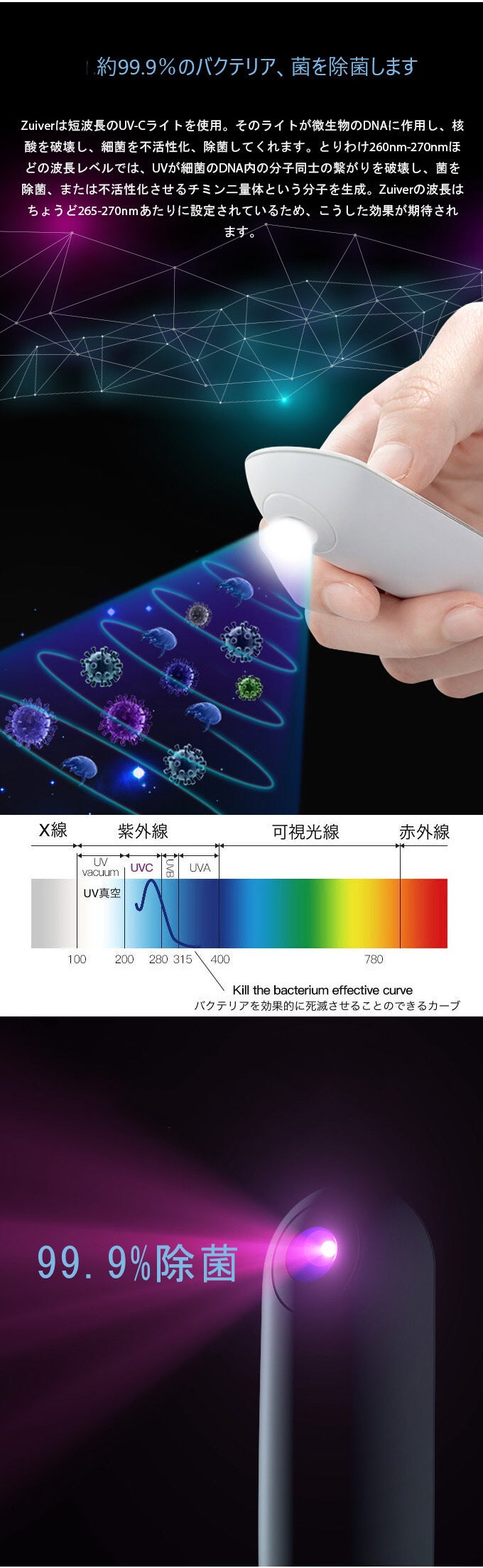 細菌(バクテリア)は目に見えないもの。でもZuiverがあればいつでもどこでもそんな菌から私たちを守ってくれます。