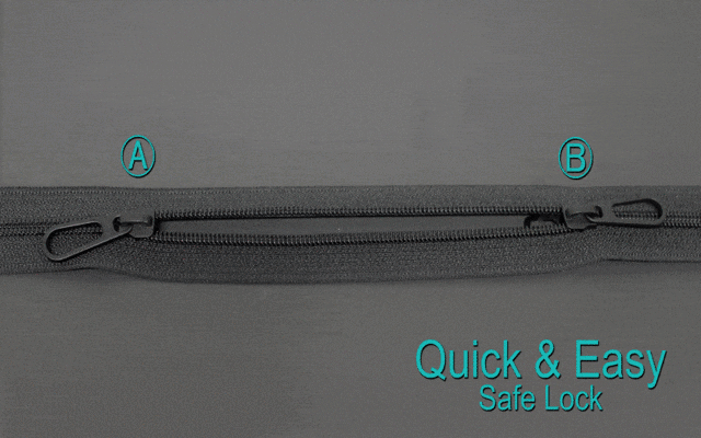 Quick & Easy セーフロックは、機構を知らない人が勝手にファスナーを開けることが難しい最新の防犯ファスナーです。