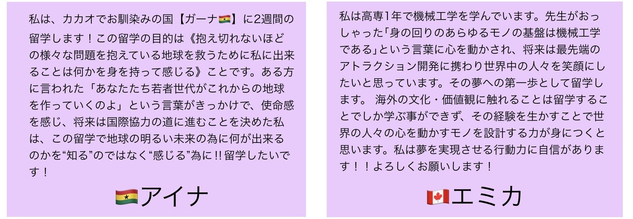 ※新型コロナウイルスによって私たち自身の留学開始が遅れる可能性がございますが、その影響を受け留学体験報告会や様々なリターンも延期・変更となる可能性があります。ご了承下さい。