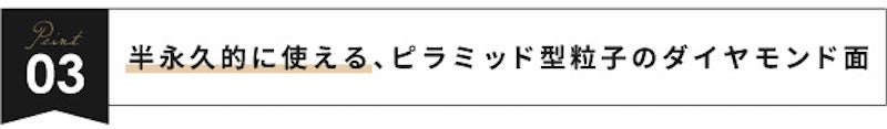 ダイヤモンドの粒子は35µm(マイクロメートル)、これは砥石に置き換えると#430の粒度に相当します。日本では、荒砥〜中砥 とされる粒度ですが、ダイヤモンドをピラミッド型にカットし、それをニッケルに埋め込む独自の技術により、日本の研ぎ師が目指すような 滑らかで鋭い切れ味に仕上がります。
