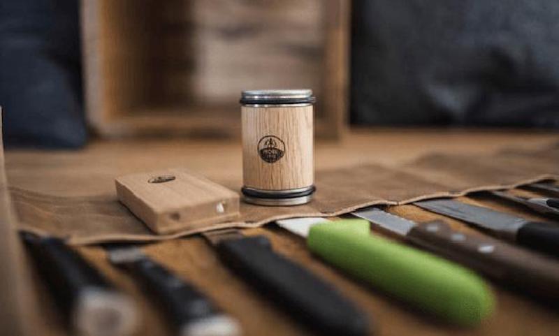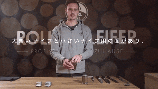 ROLLSCHLEIFER(ロールシュライファー)は、ナイフを研ぐためのグリップローラーとナイフを支えるためのウッドプレート、この2つの相互作用によってナイフを研ぐツールです。