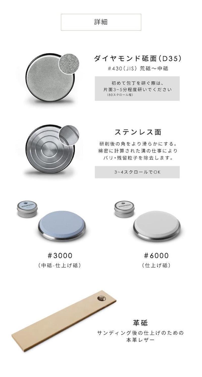 #3000と#6000のプレートがあれば、包丁の種類や部位によって砥石を使い分ける作業を同様にこなし、最も難しいとされる「均一に研ぐ」技術をROLLSCHLEIFER(ロールシュライファー)の動作が完璧に代行します。
