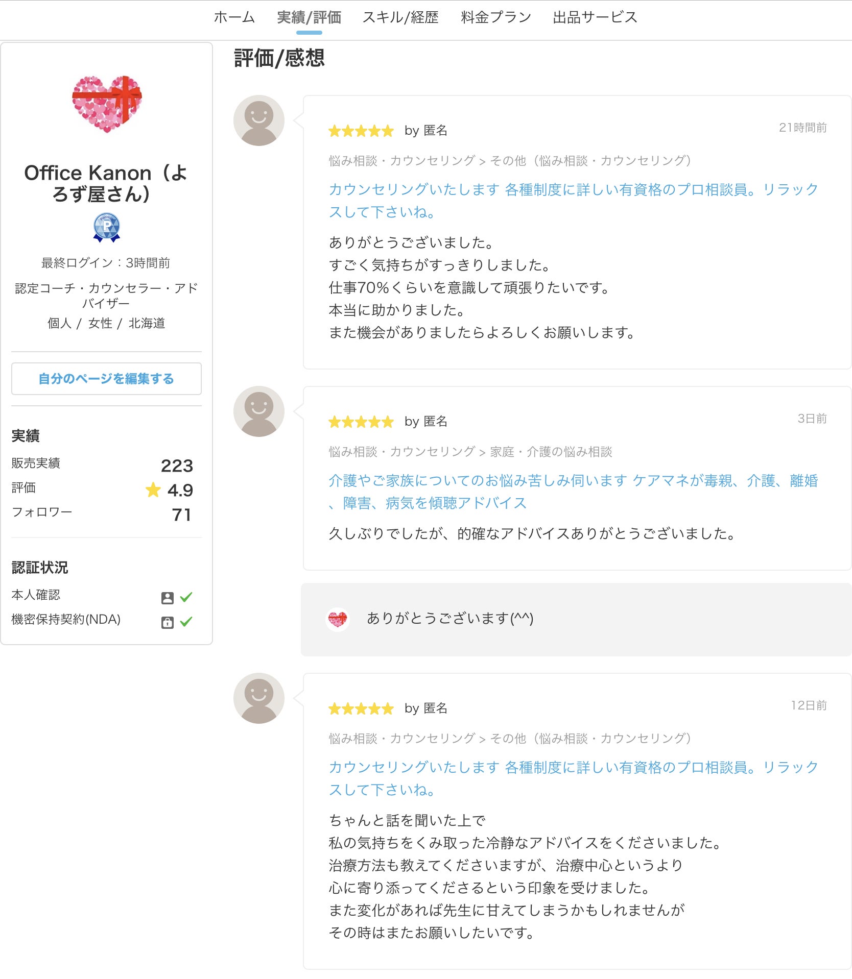 2018年12月、より多くの方のお話を聴くためにオンライン・スキルマーケットココナラにてカウンセリング・コーチング・介護相談を出品しております。