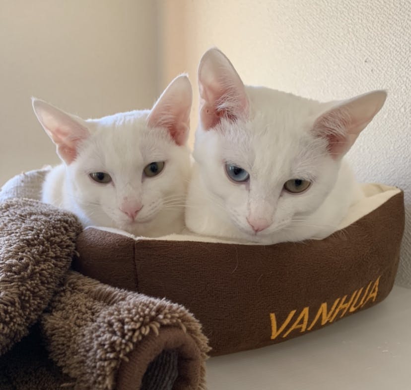 生後9ヶ月になる白猫兄妹と暮らしています