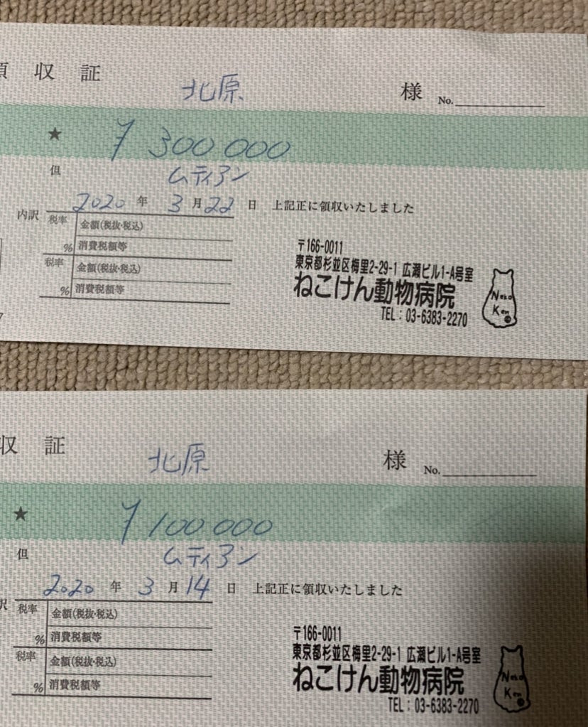 私は譲渡元である保護猫団体ねこけんさんに相談をして翌日にはねこけん動物病院で詳しいFIPの説明を受けた上でFIP治療薬MUTIANを処方してもらいました