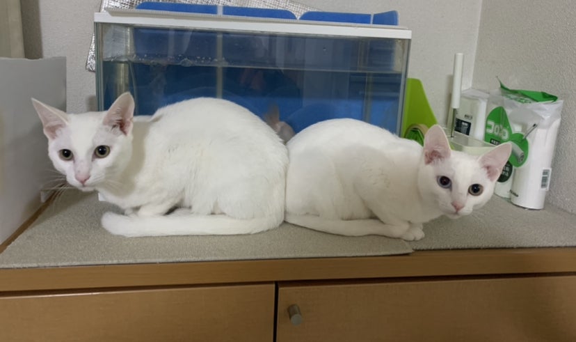 生後9ヶ月になる白猫兄妹と暮らしています