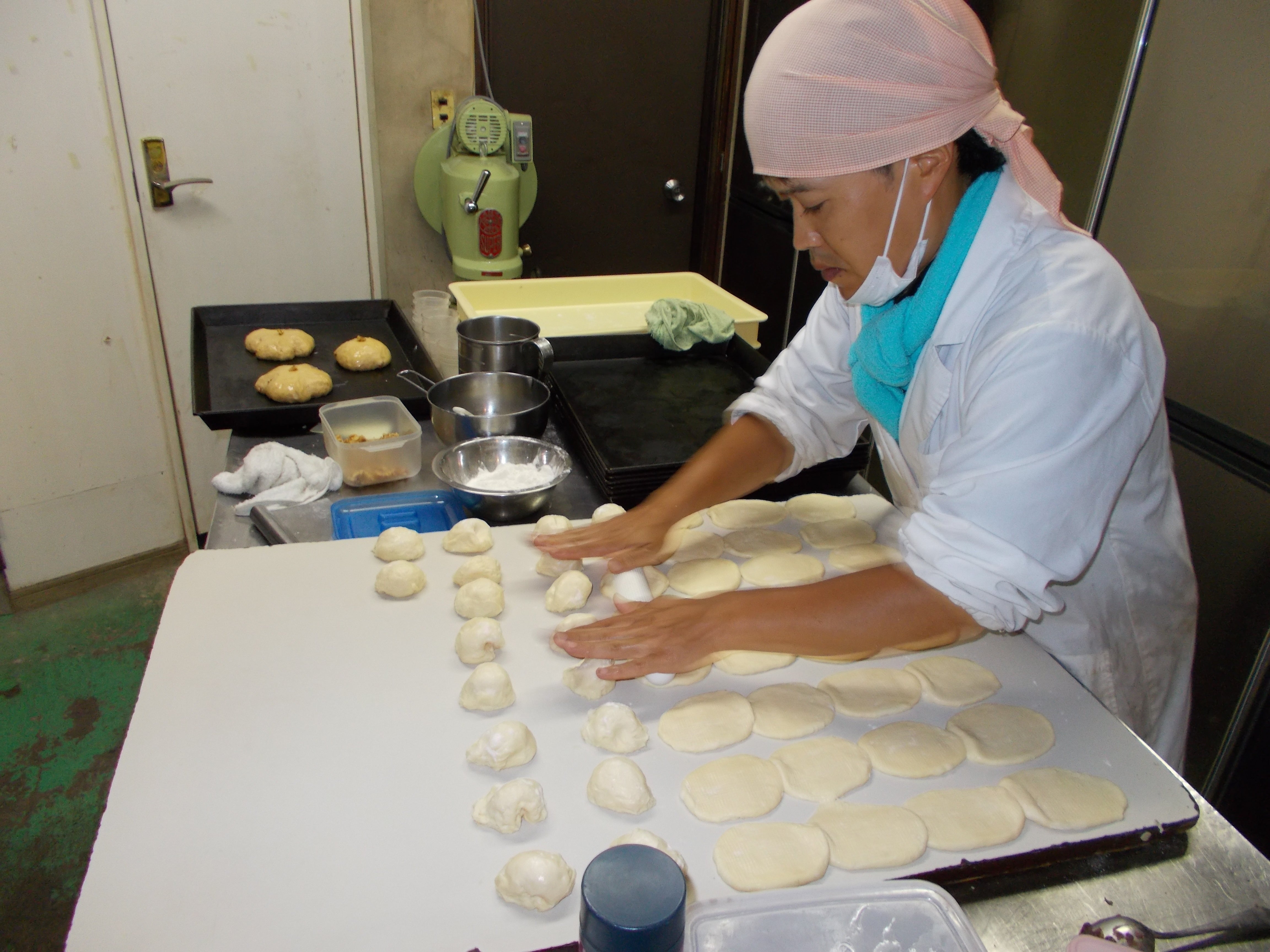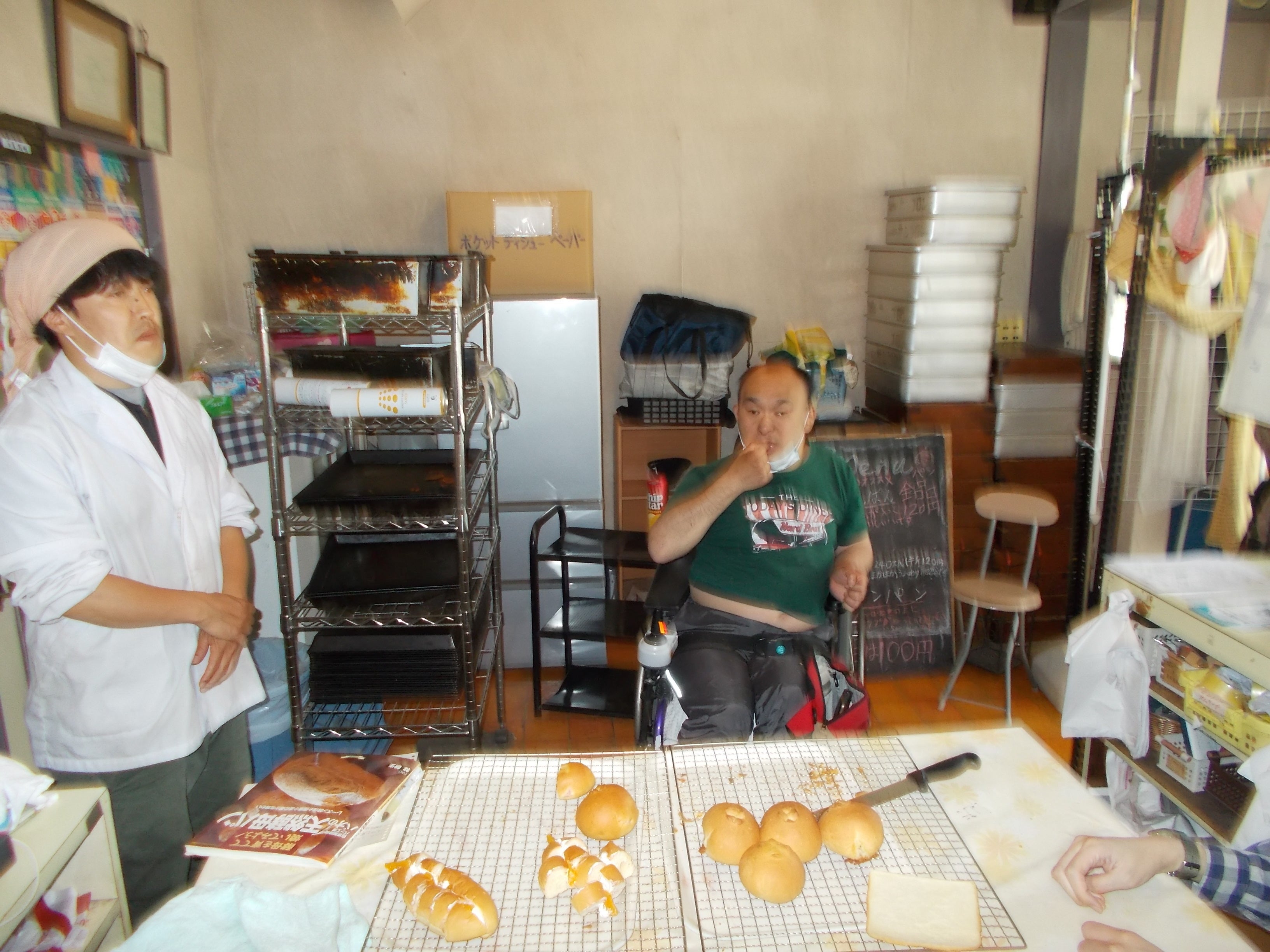 新型コロナの緊急事態宣言を解除する自治体も出てきましたが、埼玉県ではまだ続きそうです。特にまるまる工房の売上の8割が、市役所や県庁などの自治体の施設での販売なので、公共施設の休業が終わらないと営業を始められません。でも皆様の支援が進んで、スタッフは元気が出てきました。3密を避けて、新作パンの試食も始めました。