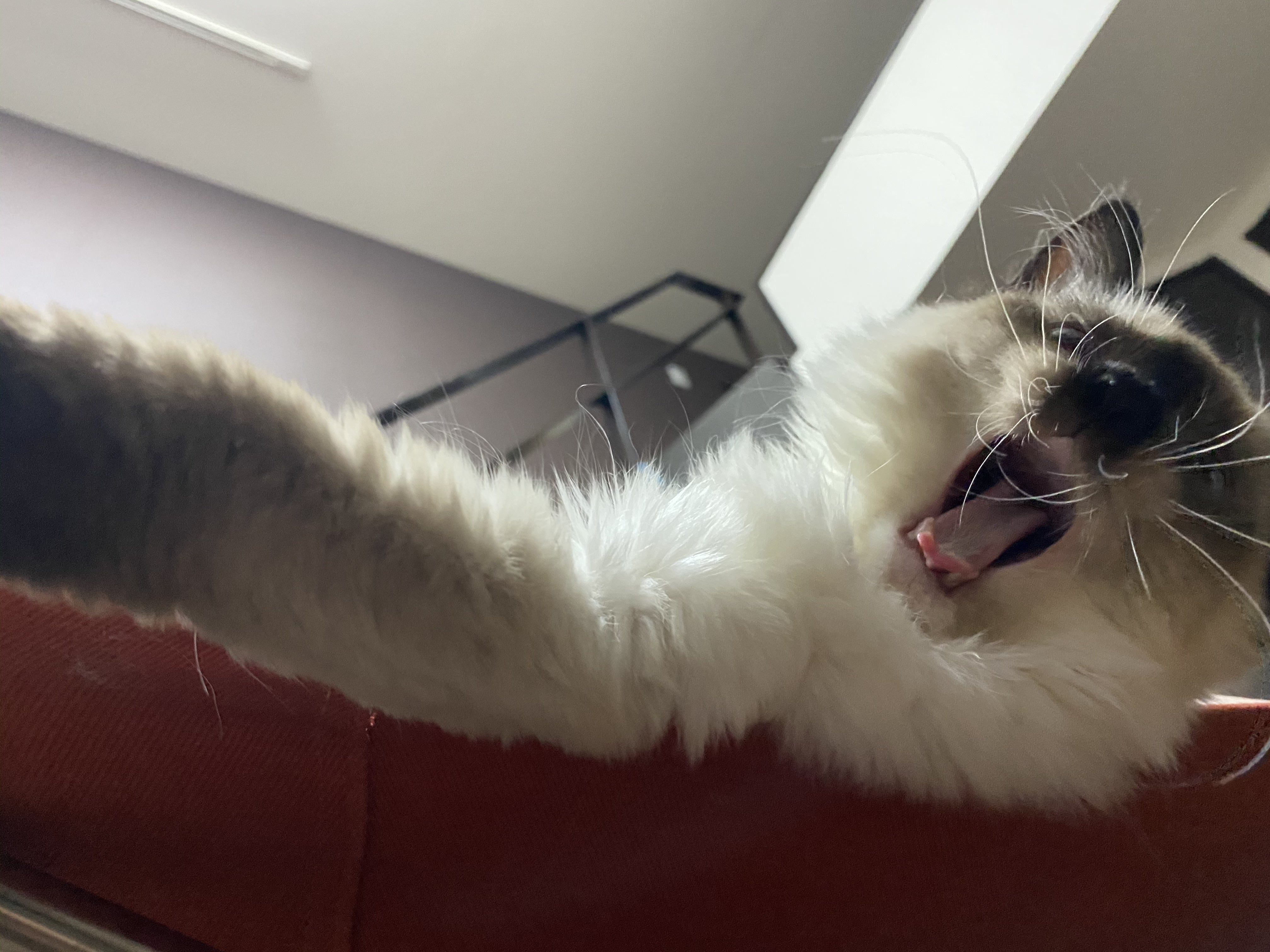 MUTIAN250mgお気に入りの椅子の上で(*´`)あくびの時はぶさかわ(*´`)いつもしまじろうと一緒に寝たり、この場所を奪い合ったり!クラウドファンディング残り5日になりました!たくさんのご支援ありがとうございます(´;ω;`)!