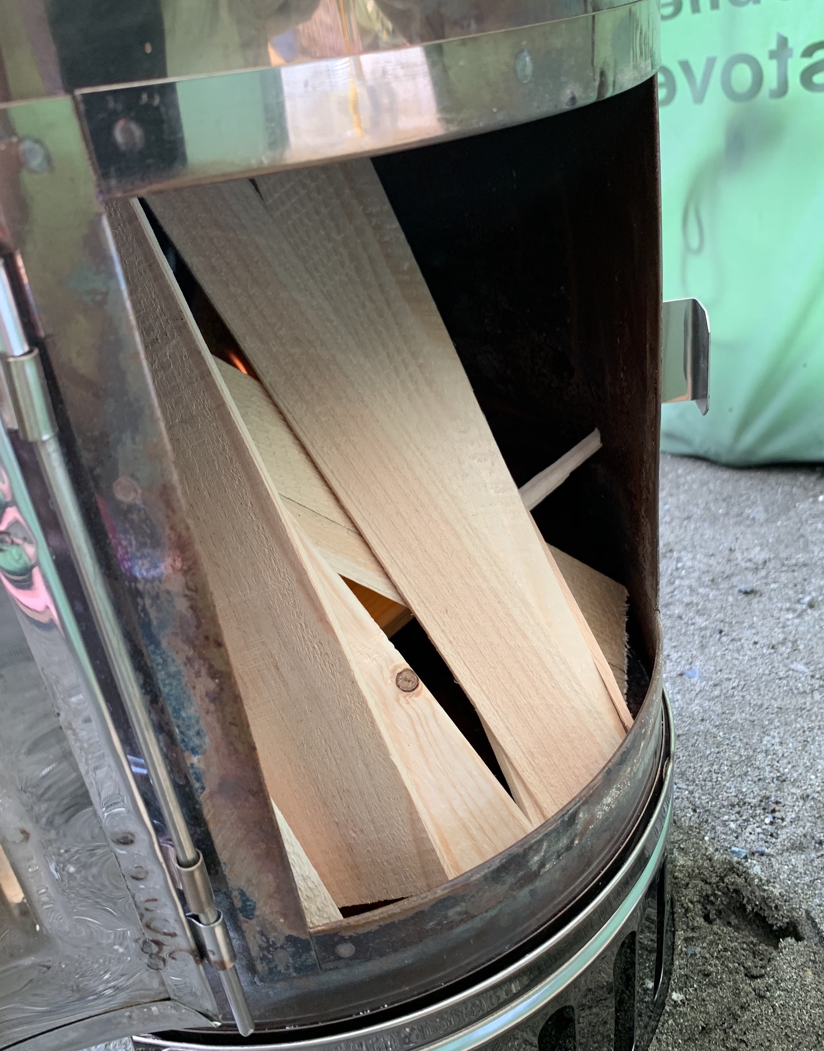 早速薪を焼べていきます。こんなに暑さを欲するなんて。