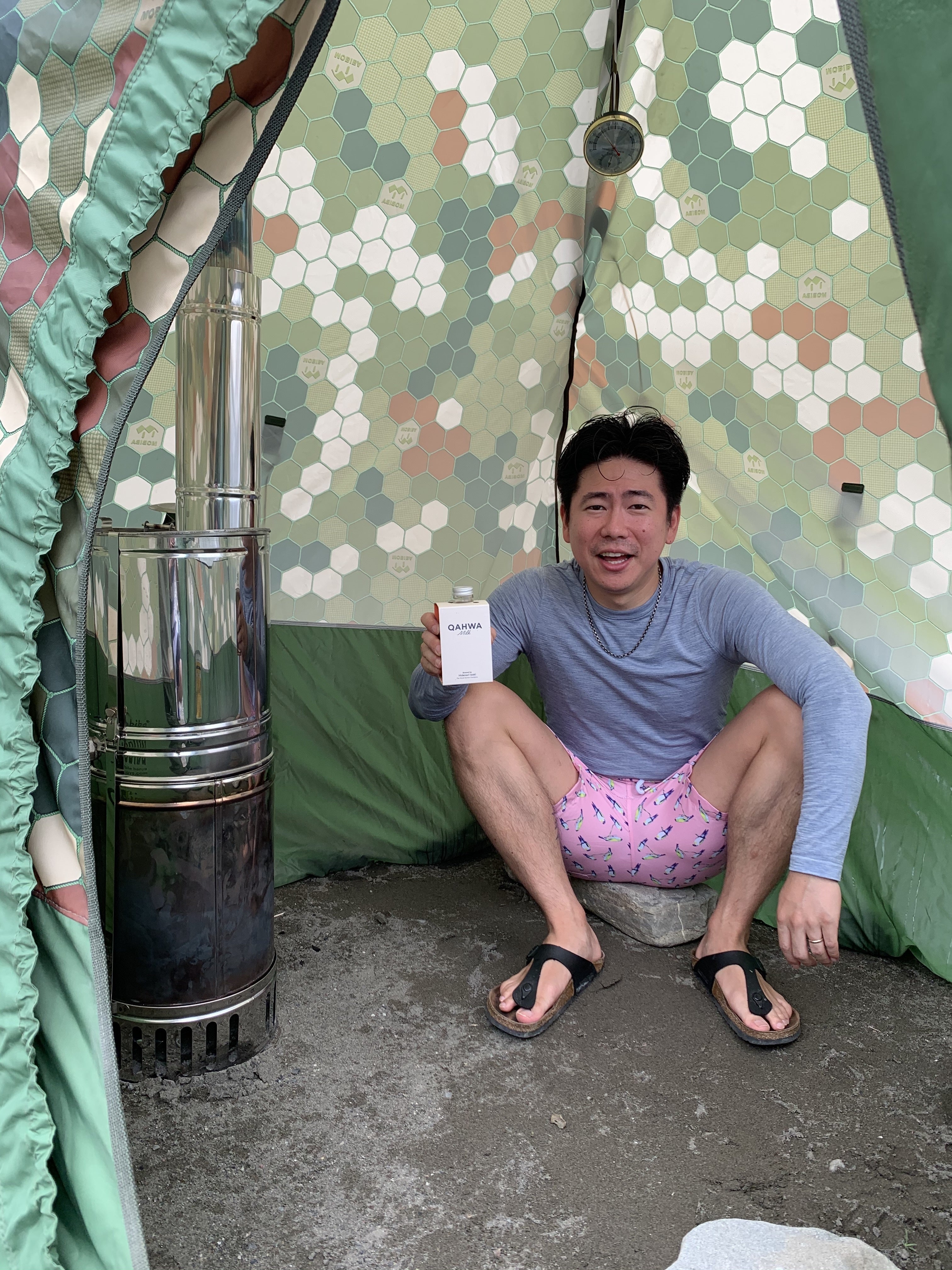 度々このクラウドファンディングでも、QAHWA MILKの究極の楽しみ方は、サウナや温泉の後に「ととのった」後に飲むことだ!と口酸っぱく言い続けてきたのですが、実際に支援者の皆様や購入を考えているお客様にその実体験をお伝えしなければと思い立ち、埼玉は秩父の奥地まで行ってきました!(遊びではありません。BBQしたけど)