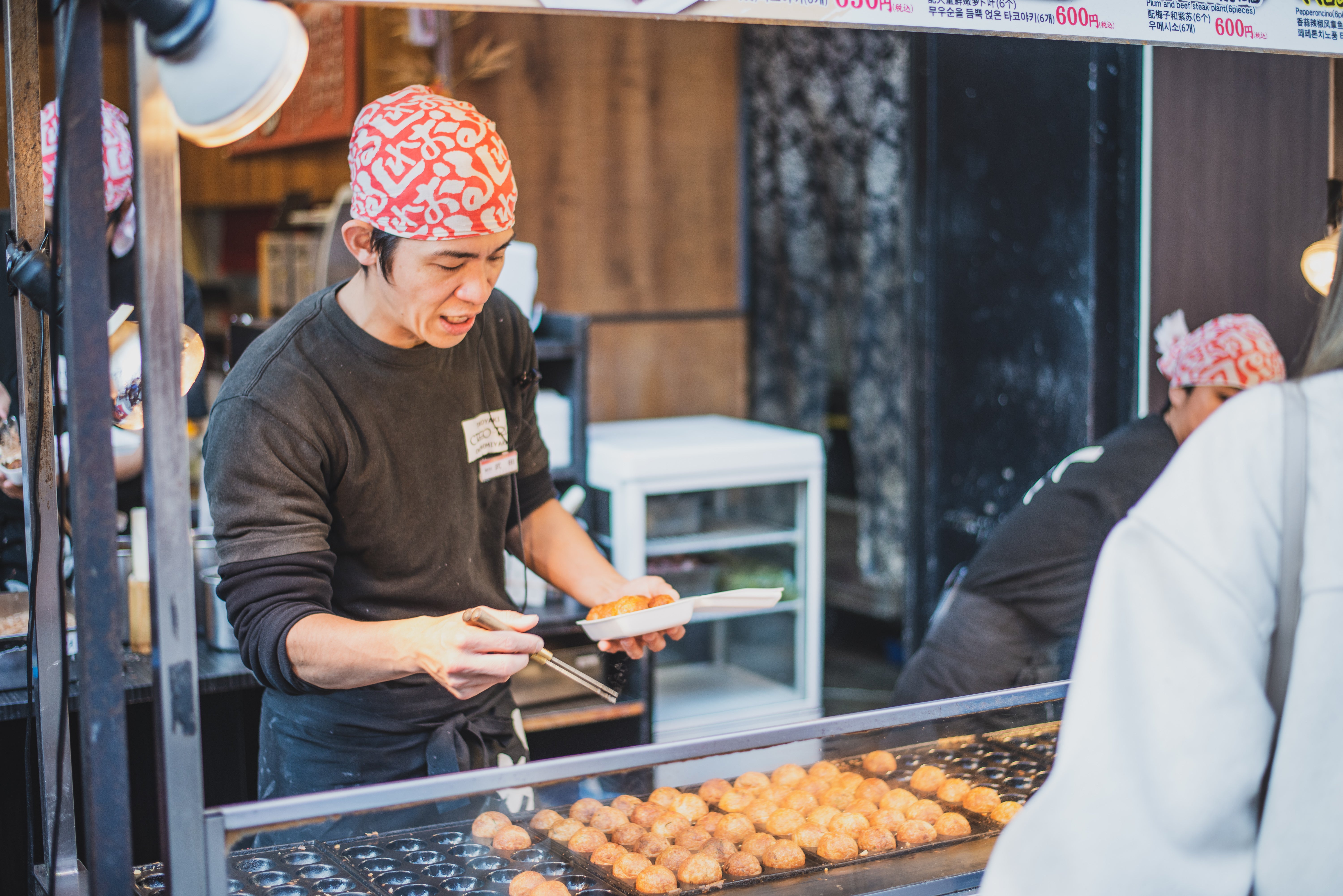 道頓堀の食文化にあこがれ、この地で行列ができる店舗になったことに、誇りと感謝を持ち続けてきました。代表取締役の加西は、道頓堀商店街の副会長を4期務め、万博誘致にも貢献してきました。カザフスタンまで出向き、粉もんをプレゼンテーション。日本食を広める活動なども行っています。