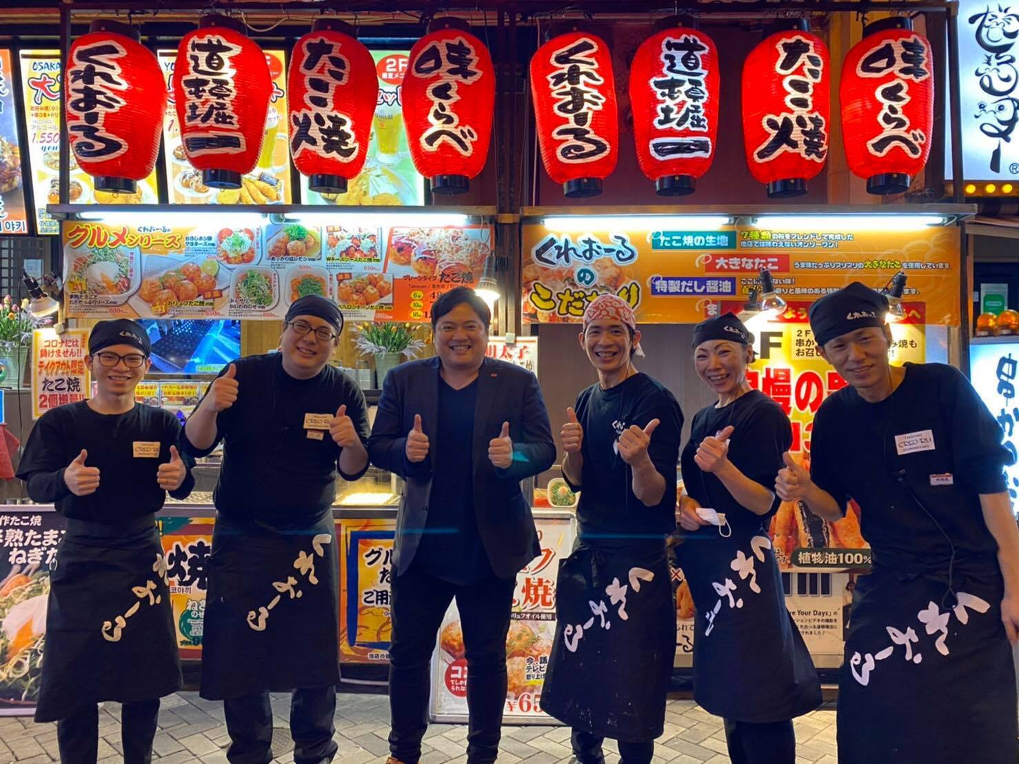 「大阪のソウルフードが、ほんまに旨いもんやと知ってほしい」。仲間と夢を語って、道頓堀商店街に進出。想いを同じくしてくれる家族は一人増え、二人増え、今は全国11店舗、総勢100名以上になりました。