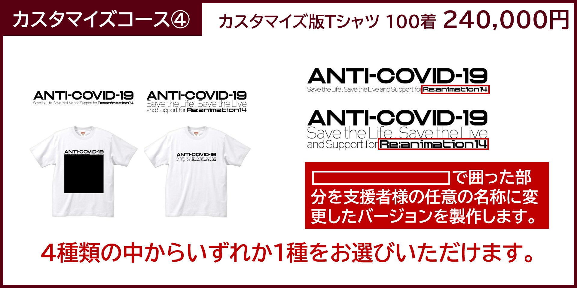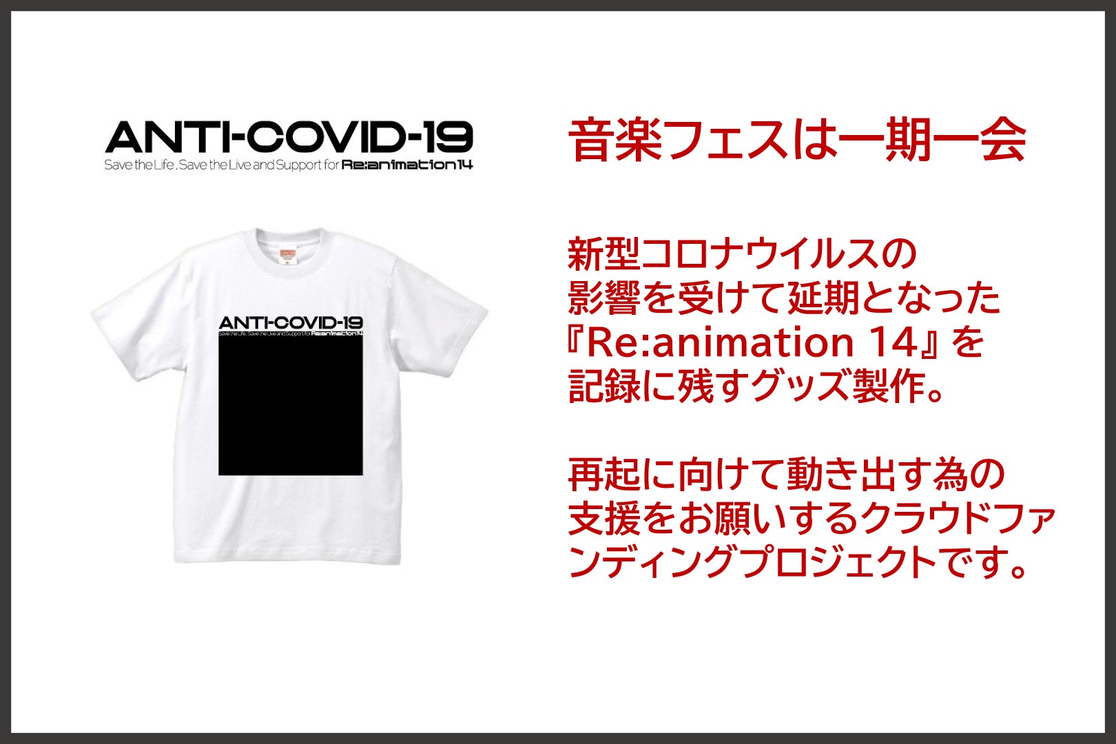 これをプリントしたTシャツをクラウドファンディングで販売し、『Re:animation 14 in Uenohara』延期で発生した費用の補填と次回開催に向けた活動資金とします。1着ご購入いただけたら、そのご支援が次のイベントの早期立ち上げに繋がります。