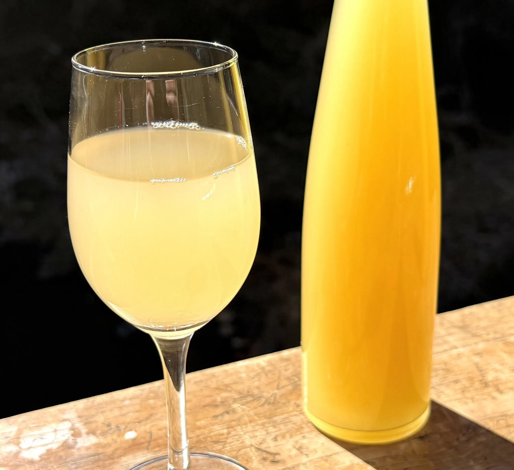 金色に輝く綺麗なお酒ですが、ボトルはオールド風の雰囲気が出るようにスモークボトルを使用し、レトロな雰囲気を意識して選定しました。