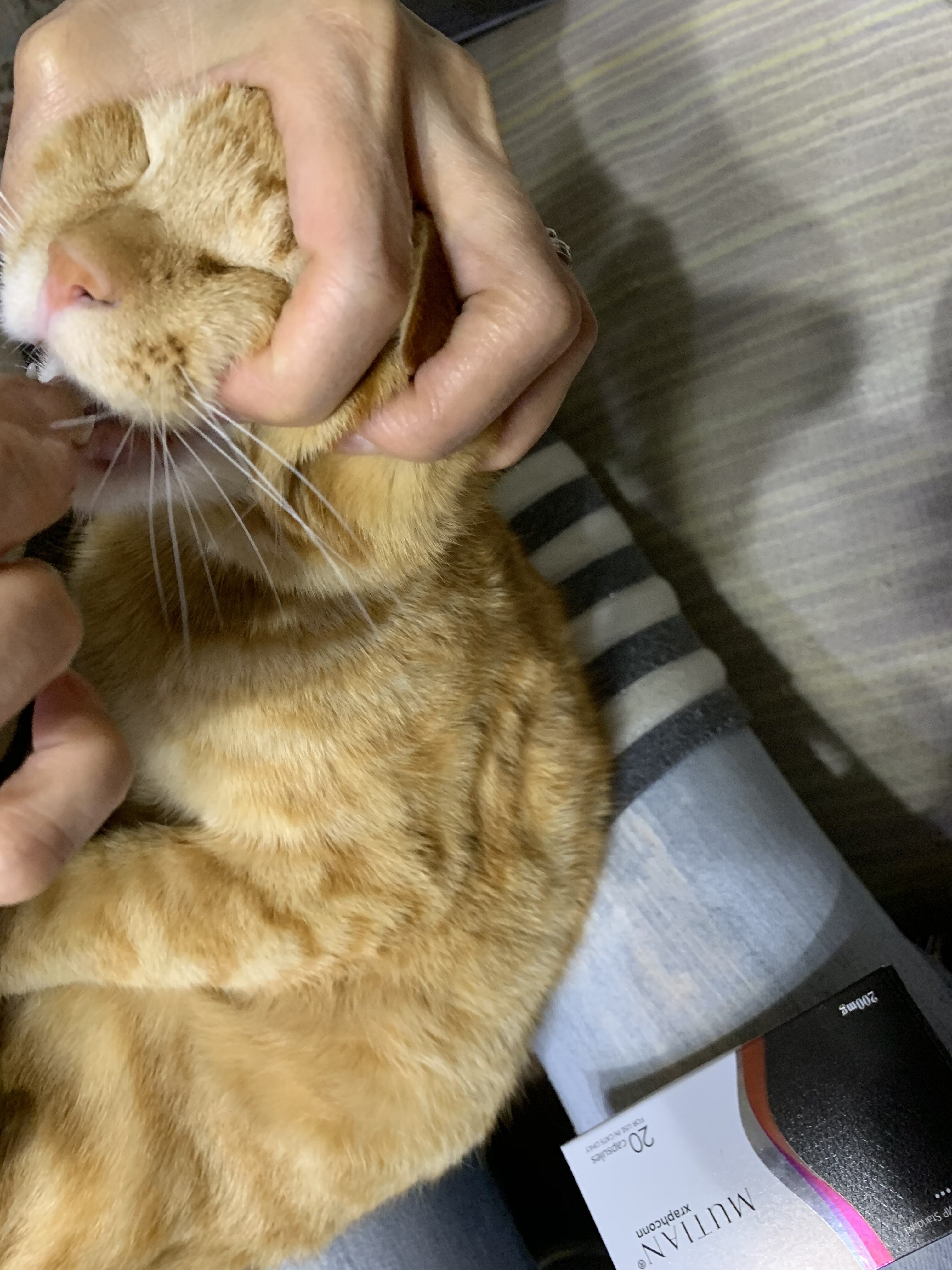 ご支援と温かい応援のお言葉をいただきましたおかげで自分たちだけではまかないきれなかったかなり高額なムティアン投薬を毎日行うことができています。FIPドライタイプの中期で内臓とリンパに無数の肉芽腫ができていたきなこは投薬の効果がどこまででるか獣医さんも期待できなかったようですが、通常の倍量の薬で幸いきなこは効果がすぐにあらわれました。毎日決まった時間に投薬をするのですが、投薬を始めて数週間経過した頃、少しずつ自分で動き回れるようになってきたきなこは察するのかそろりそろりと姿を消すようになりました。(口を大きく開けてカプセルの薬を四粒飲ませるので、きなこはかなり嫌がります。家では恐怖のムティアンタイムと呼んでいます)私もきなこに「ごめんね。元気になるためだからね」と言い聞かせながら辛い気持ちを抑えながら投薬を続けました。おかげでムティアン投薬は84日飲み切りで一旦終了することになりました。ただ、肝臓機能低下が解消されていないので今後はムティアン協力病院さんから近所の獣医さんに移り診療と処方やサプリメントで治療していきます。ムティアンは肝臓機能を活発にさせる作用があるそうで、大量の投薬の影響で肝臓に負担がかかっているようです。FIP再発がないように、そして寛解しても肝臓に負担がかかっていたり、免疫力が落ちていることで亡くなる子もいるとのことなので、皆様に繋いで頂いたきなこの命を守る為に引き続き頑張って行く予定です。