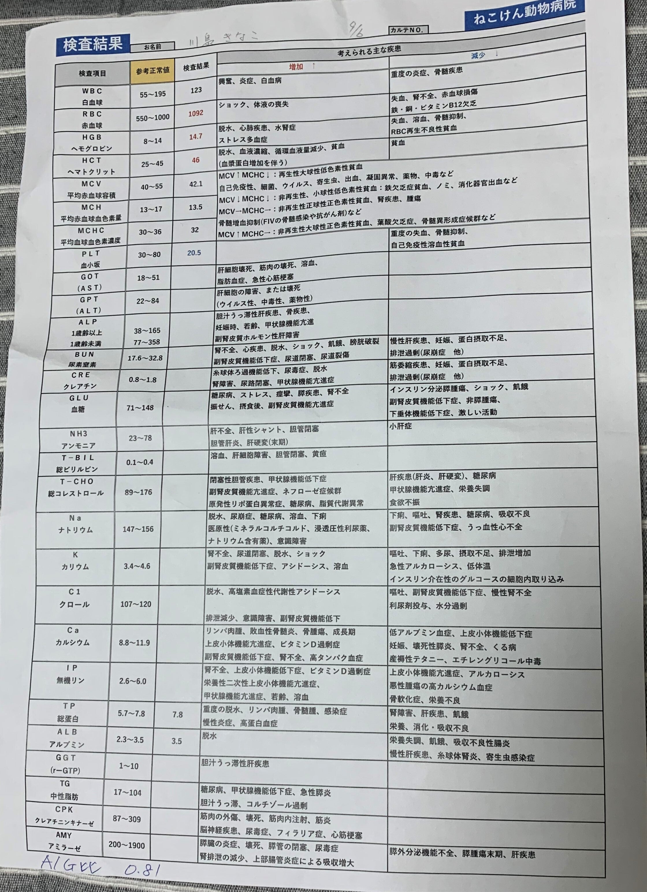 きなこの投薬終了後の経過観察3か月目の血液検査に9月6日に行ってまいりました。